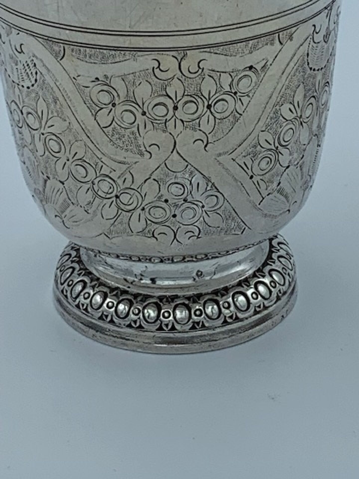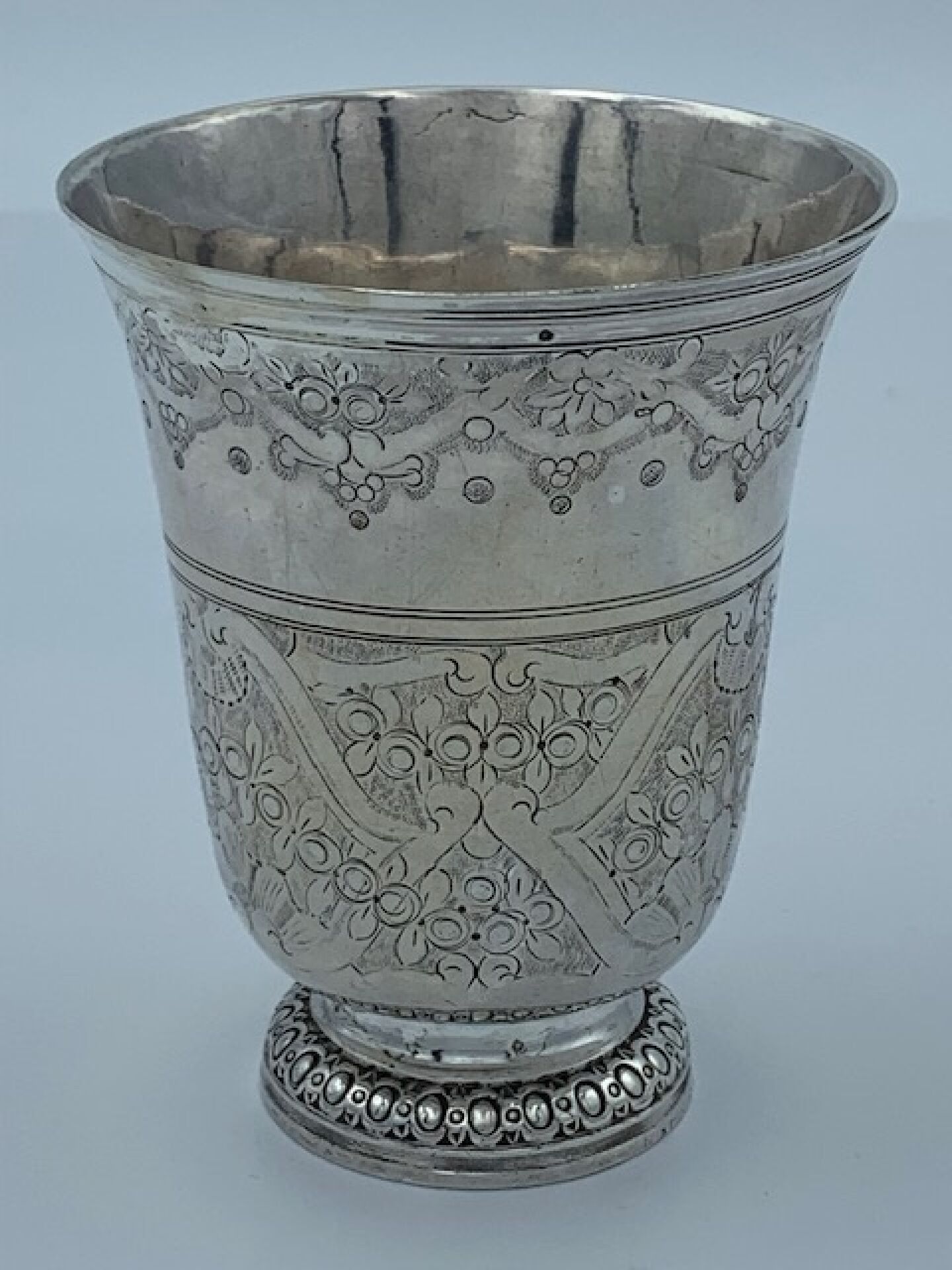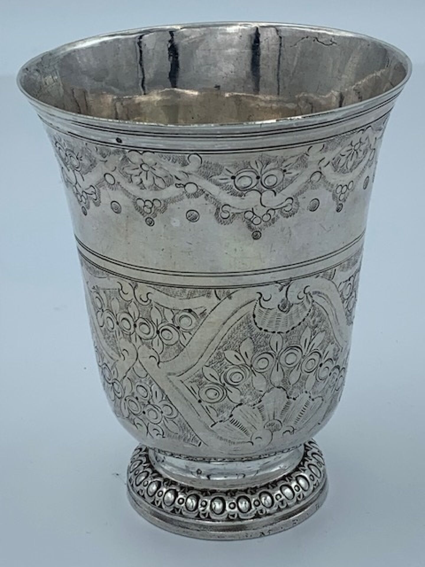 Timbale tulipe en argent, le corps gravé sur deux registres …