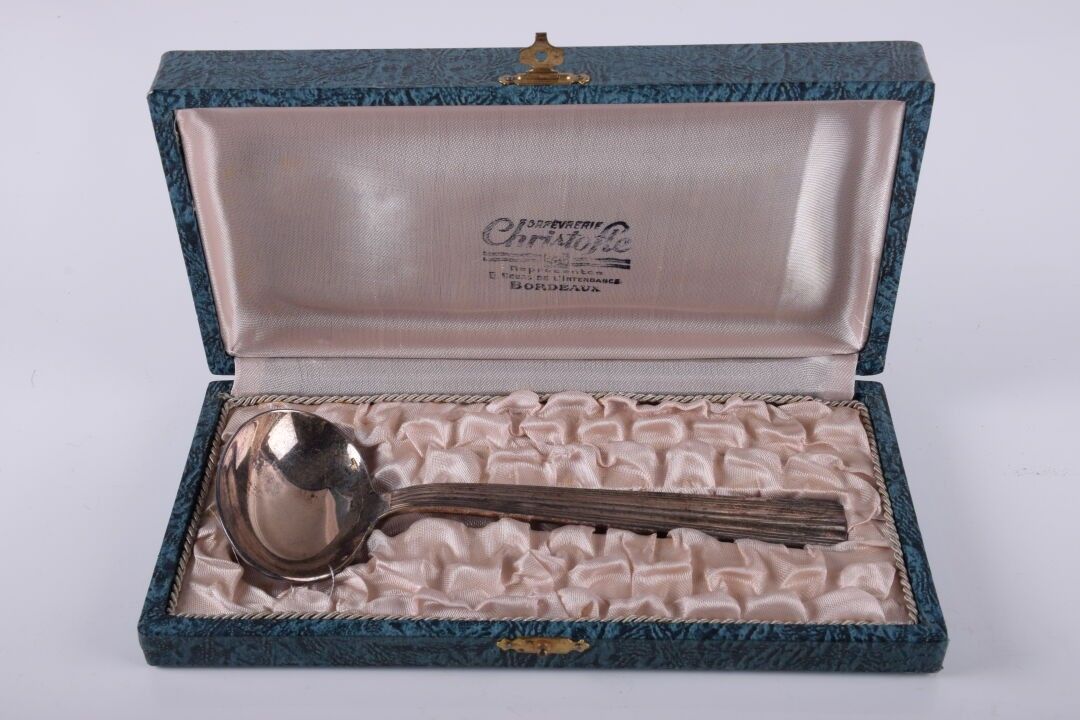 CHRISTOFLE. Cuillère à crème en métal argenté en coffret