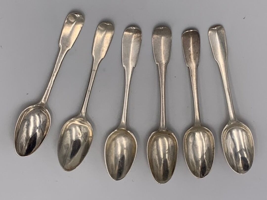 Six cuillères à thé ou à café en argent, modèle uniplat armo…