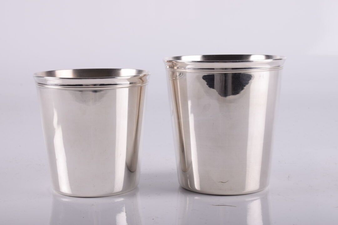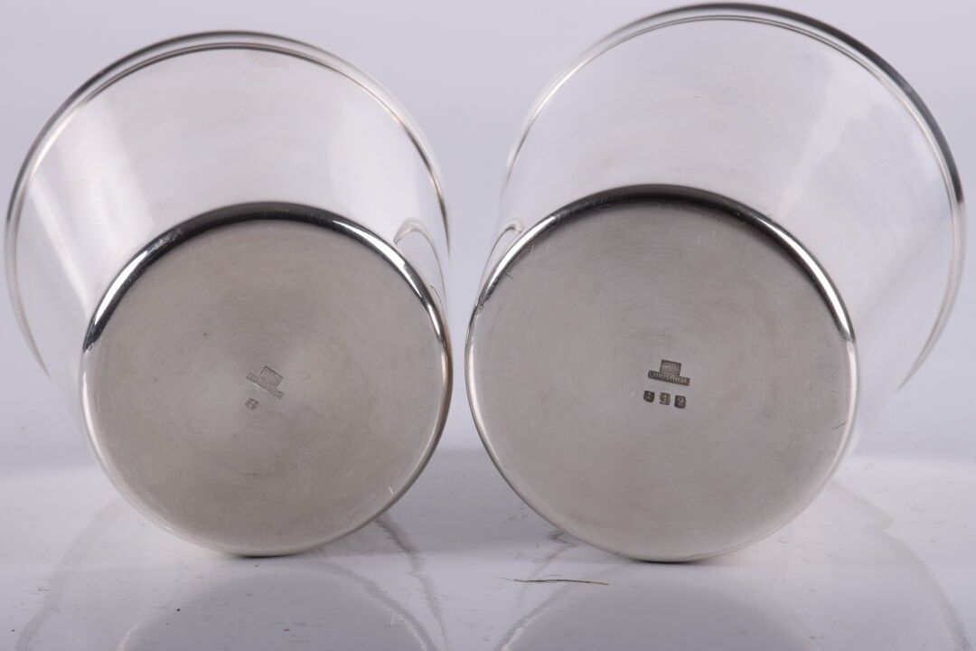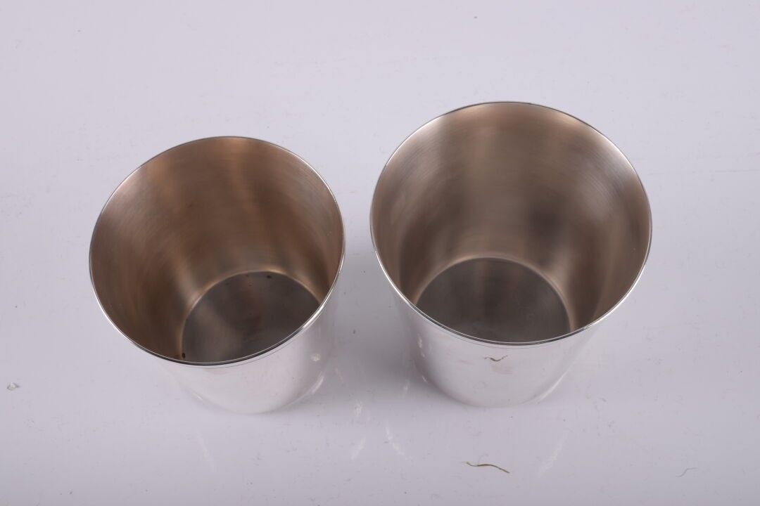CHRISTOFLE. 2 grandes timbales en métal argenté Hauteurs : 9…