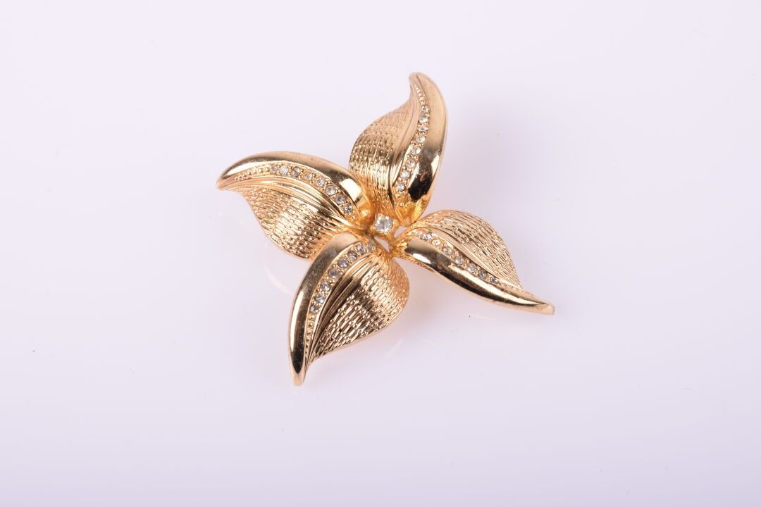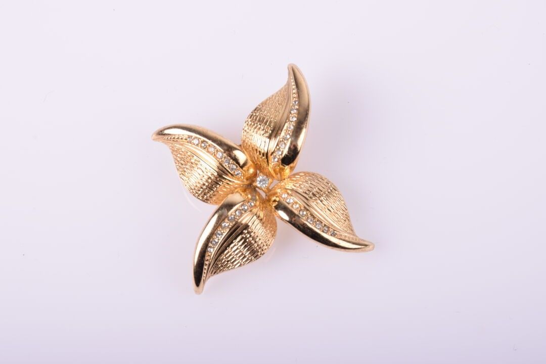 BURMA Broche à motif de fleur en métal doré avec quelques st…