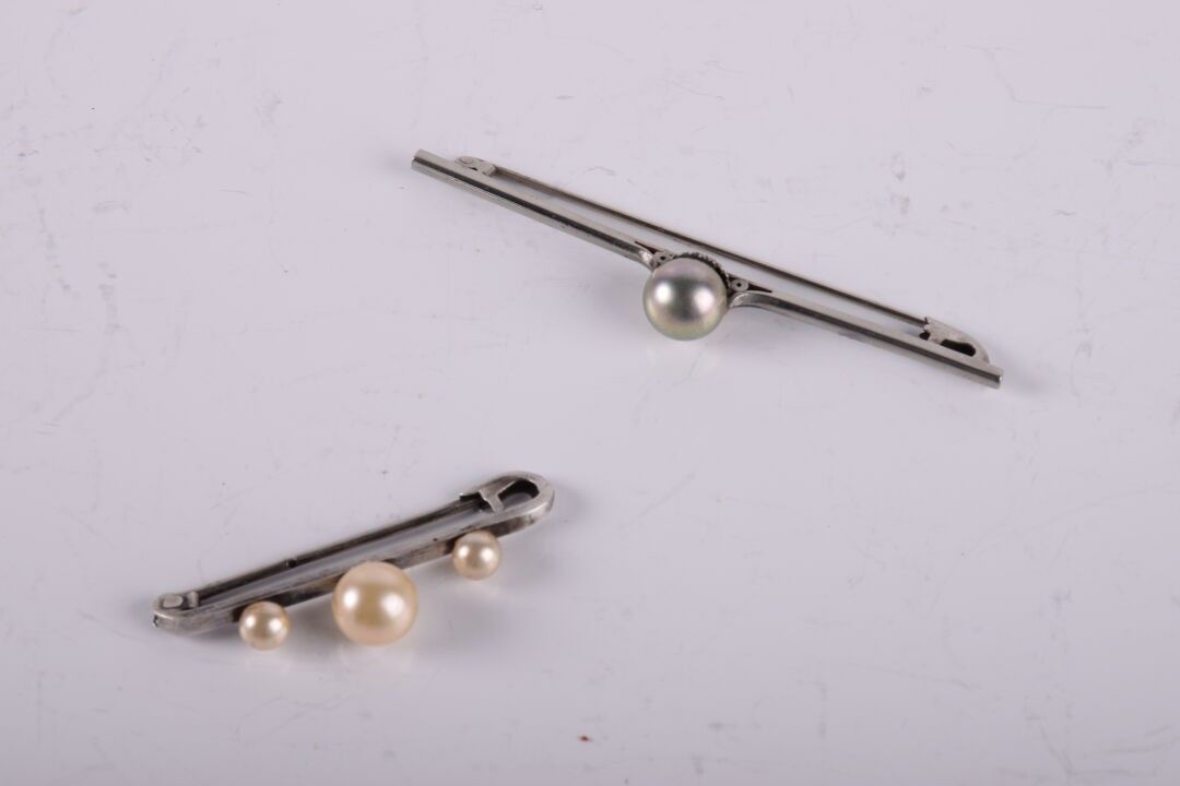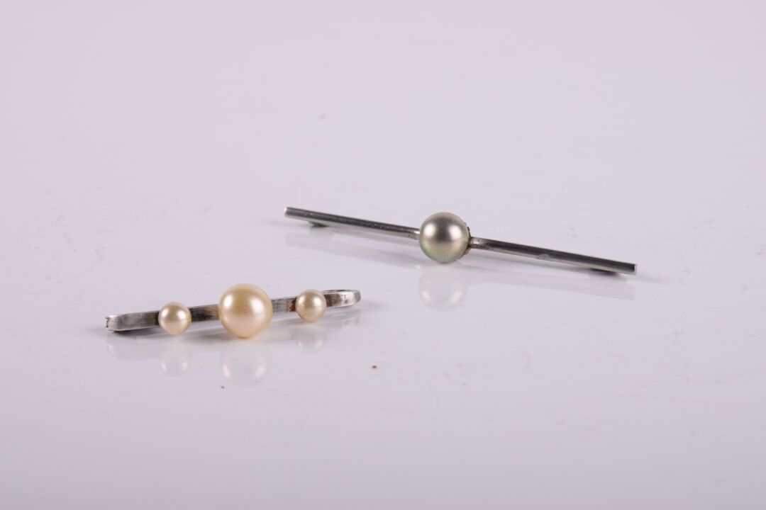 2 barrettes broches en argent et perles