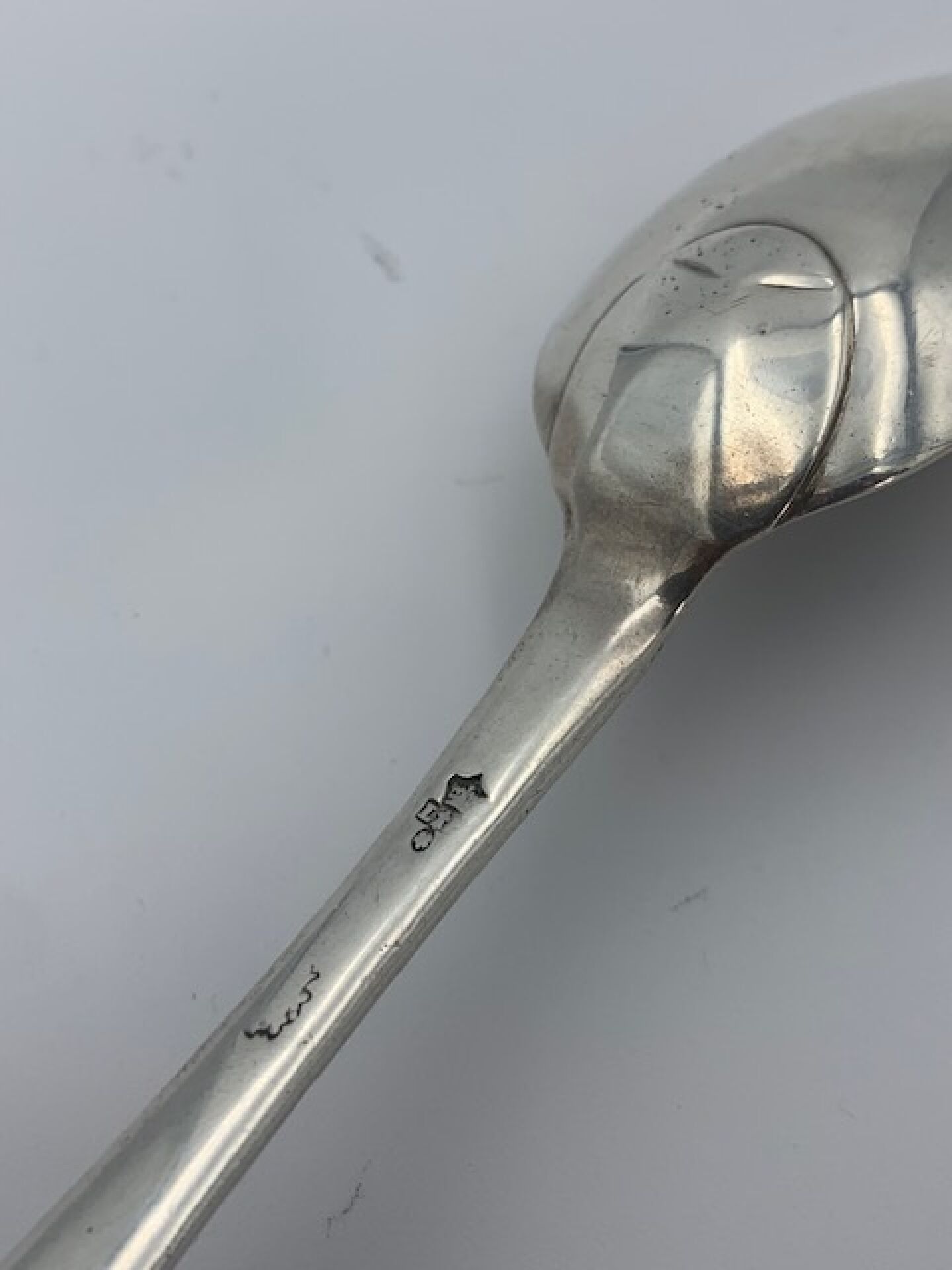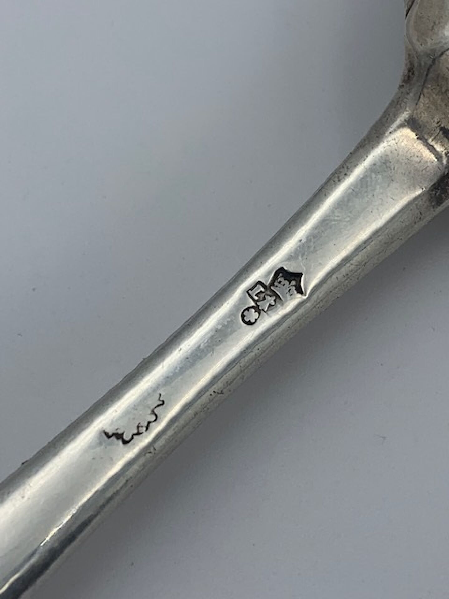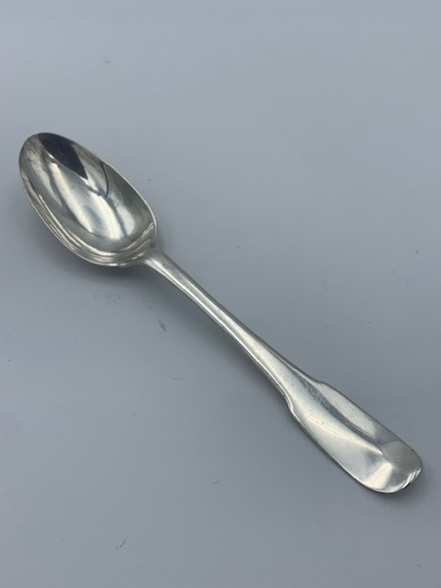 Cuillère de table en argent, modèle uni plat. Poinçons Fermiers Généraux BRETAGNE XVIIIème. Juridiction de RENNES. PONTIVY vers 1730. Maître-orfèvre : Antoine-Louis MONTALANT reçu en 1728. Poids : 76g