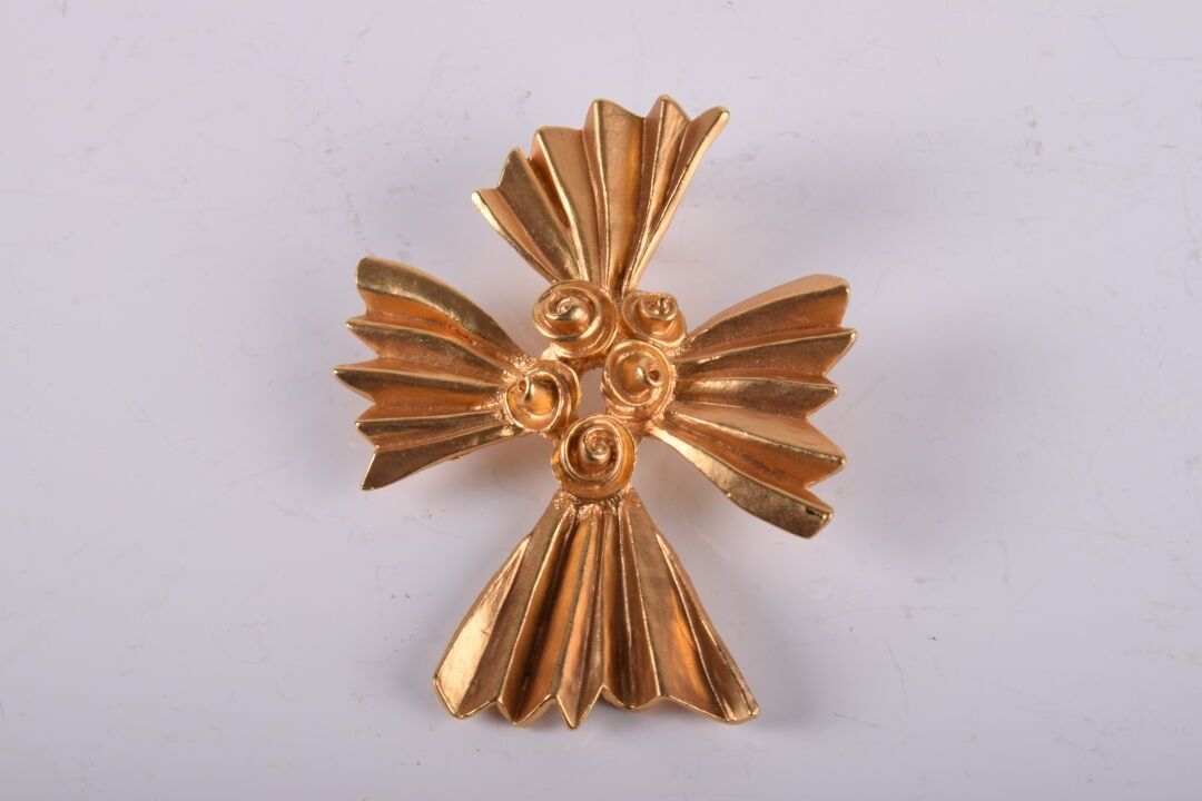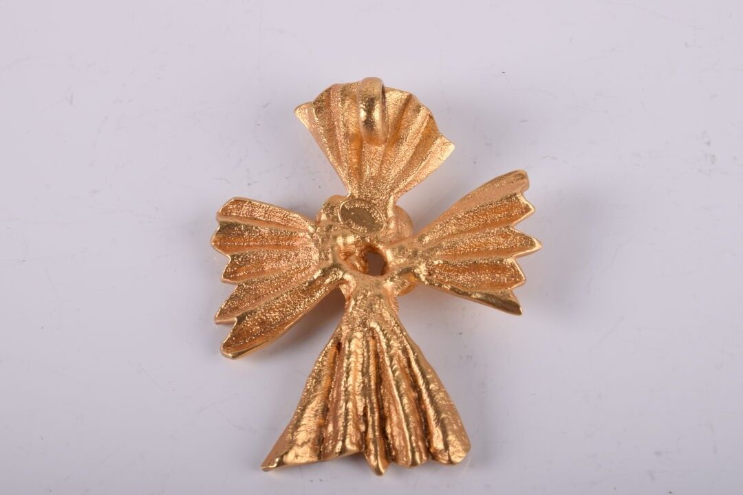 HANAE MORI Grand pendant en métal doré en forme de croix avec des fleurs au milieu