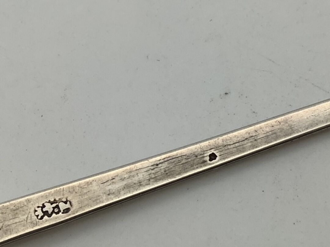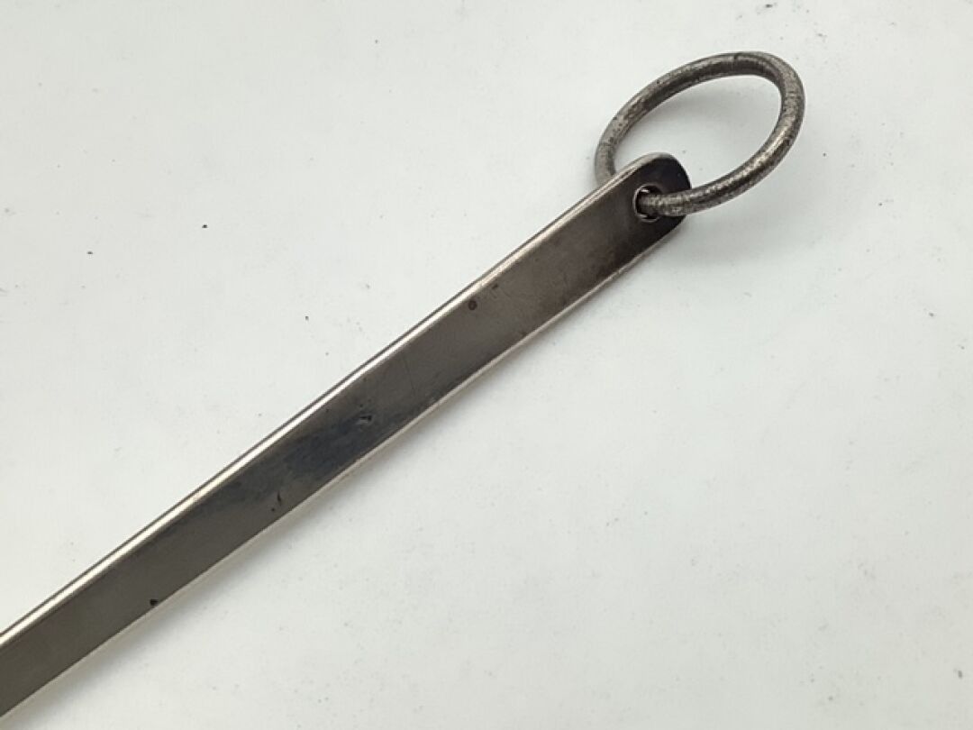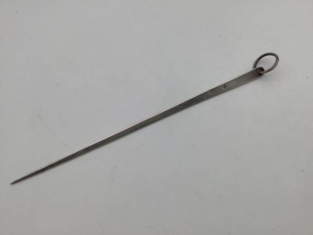 Brochette dite pique à viande en argent uni, la prise formée d'un anneau. Époque XVIIIème. Longueur : 18,8 cm