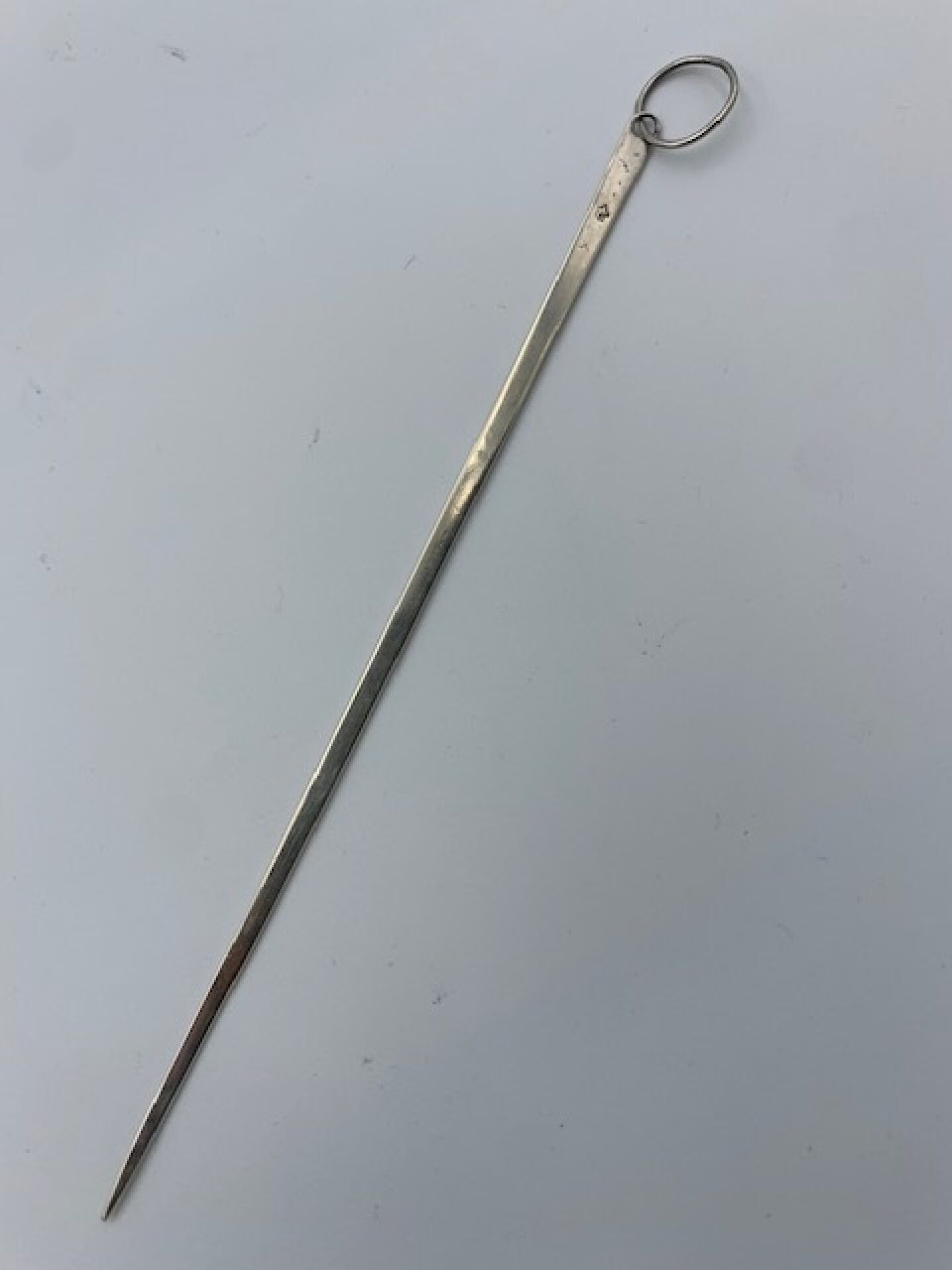 Brochette à rognon en argent uni. Poinçons Fermiers Généraux XVIIIème. Probablement POITIERS XVIIIème. Poids : 12g
