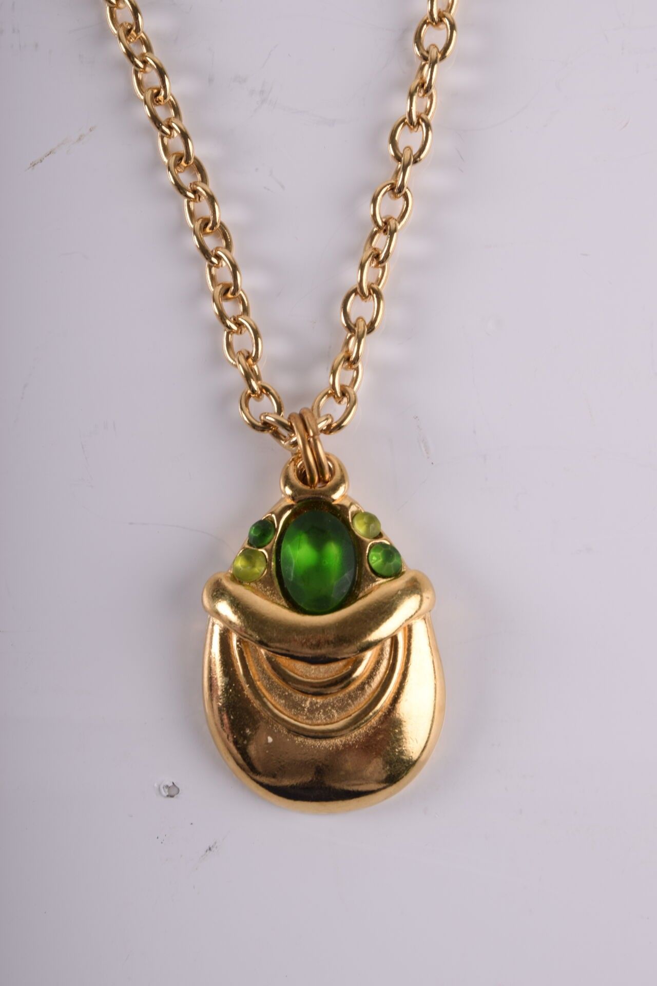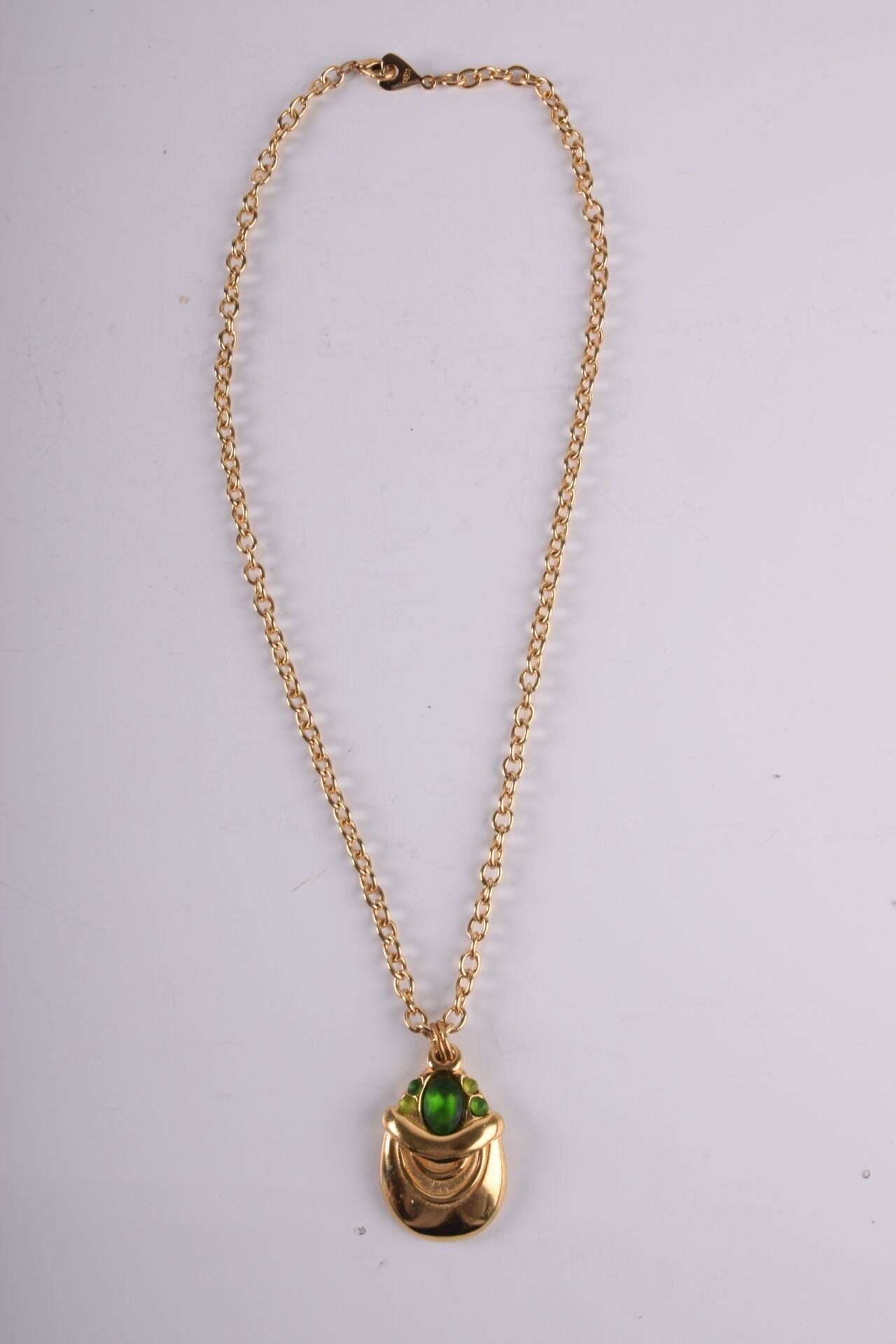 BALA BOOSTE Pendant et une chaine en métal doré avec pierre verte