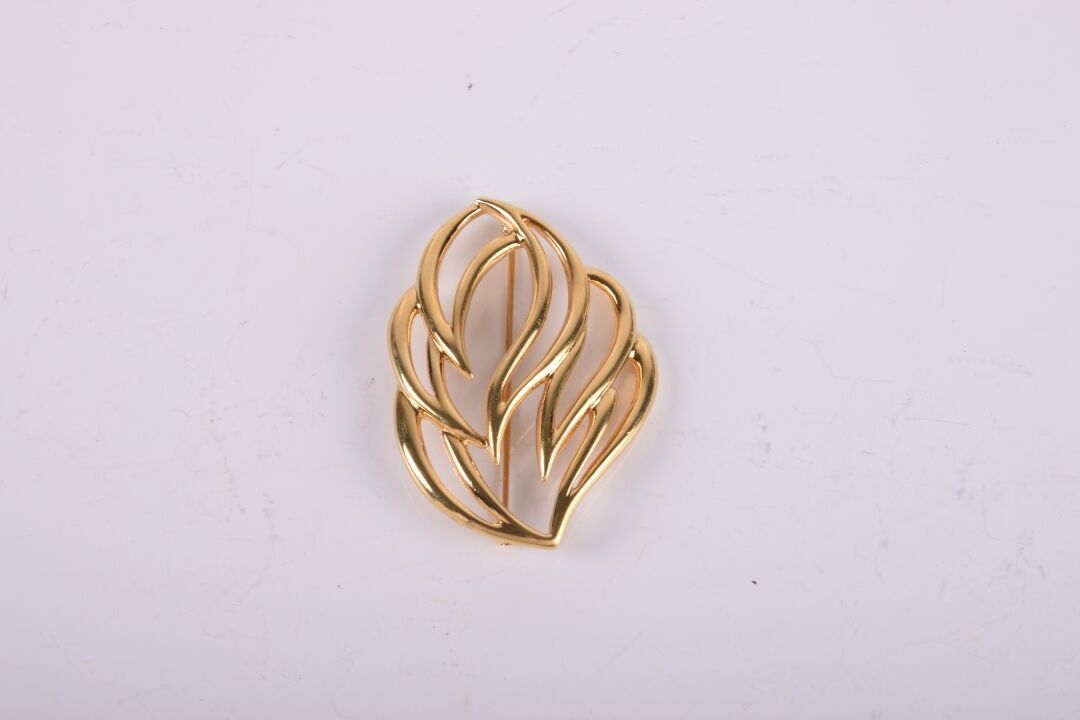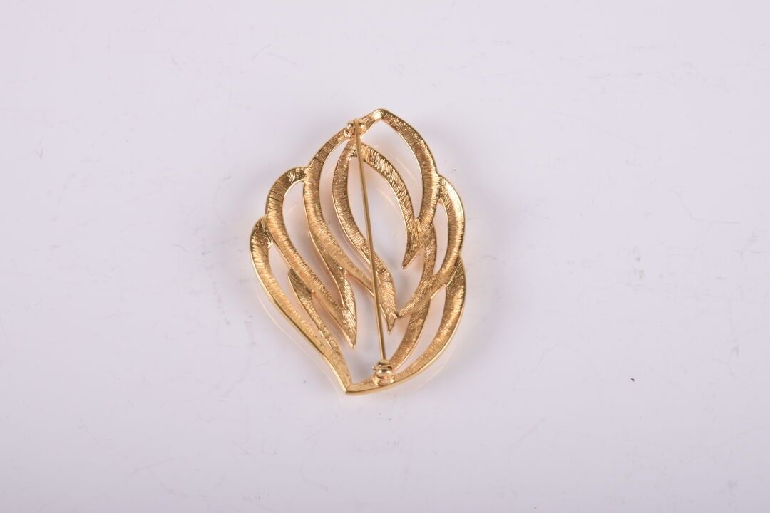 MONET Broche en métal doré en forme de grande feuille