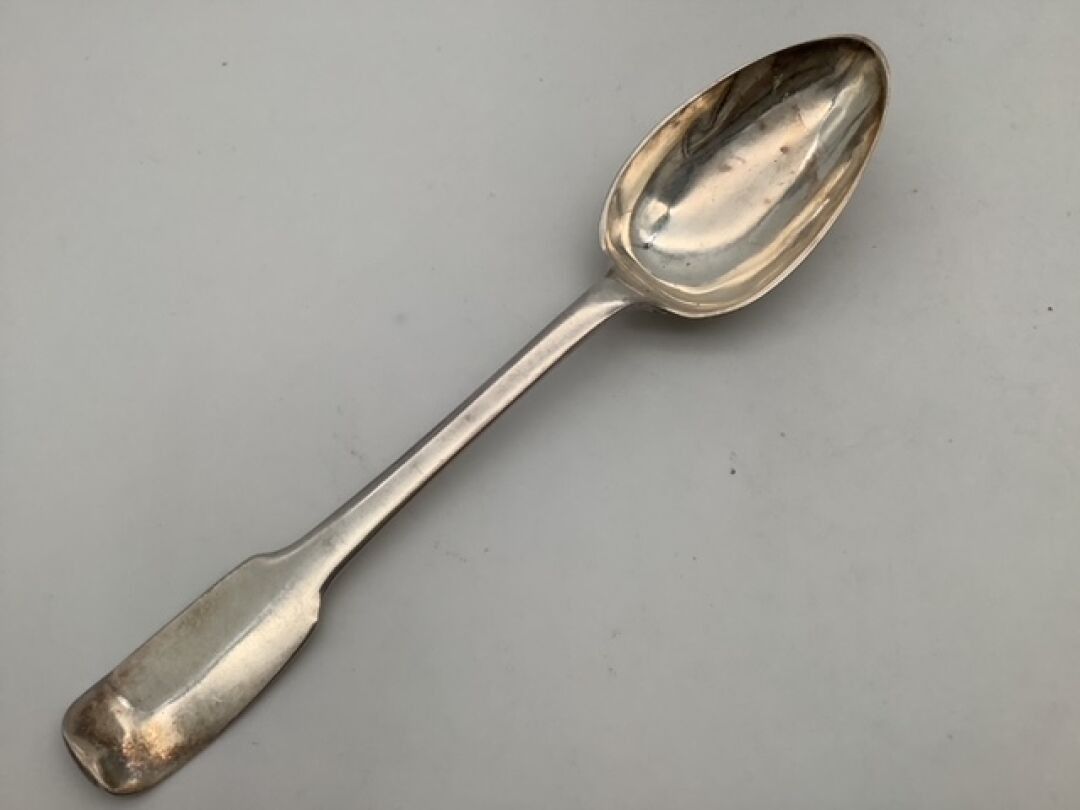 Cuillère de table en argent, modèle uni plat. Poinçons Fermiers Généraux BRETAGNE XVIIIème. RENNES 1722/1724. Maître-orfèvre : Jean ROYSARD reçu en 1709. Poids : 62g