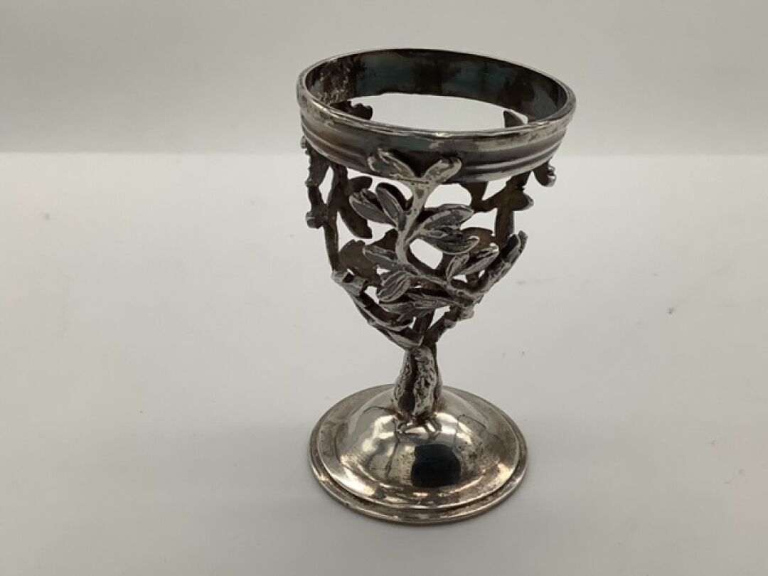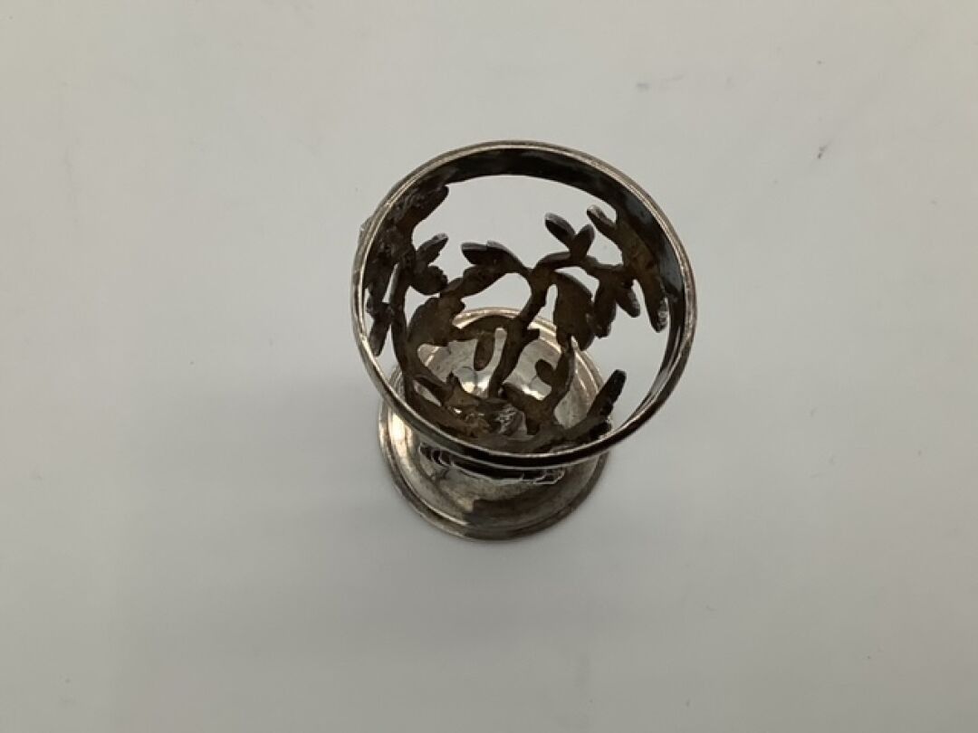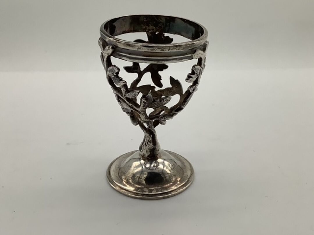 Coquetier en argent à décor ajouré de branchages. Traces de poinçons Fermiers Généraux XVIIIème. Hauteur : 6cm. Poids :32 gr