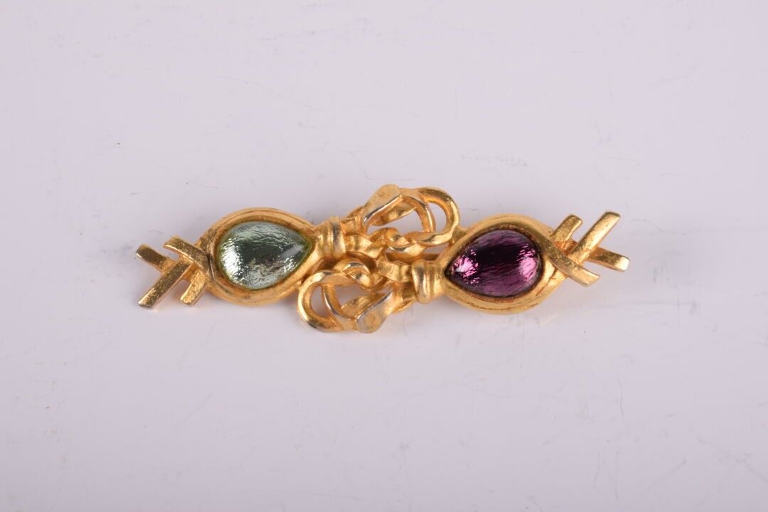 TOM PASCAL Grande broche en émail vert et violet