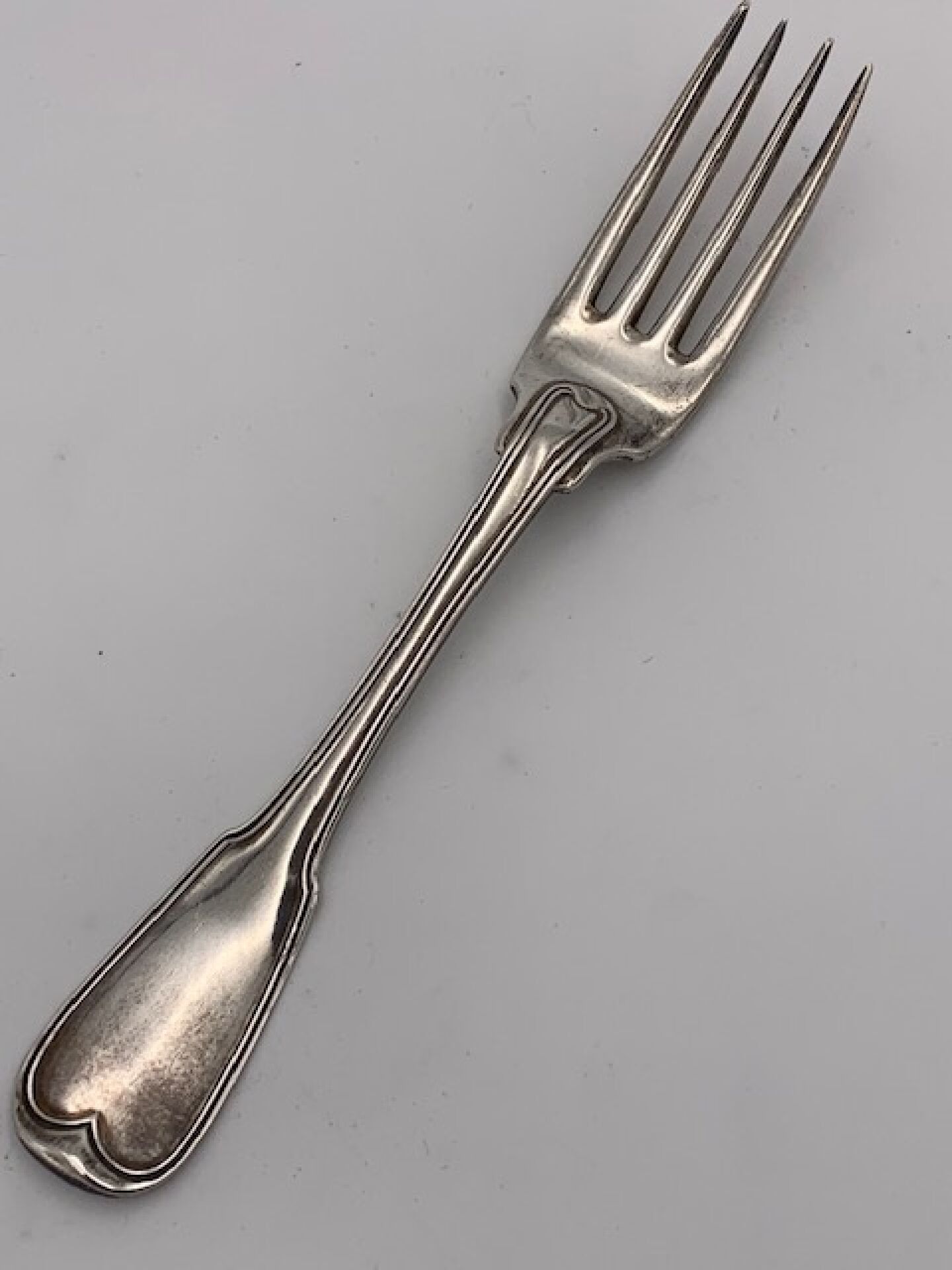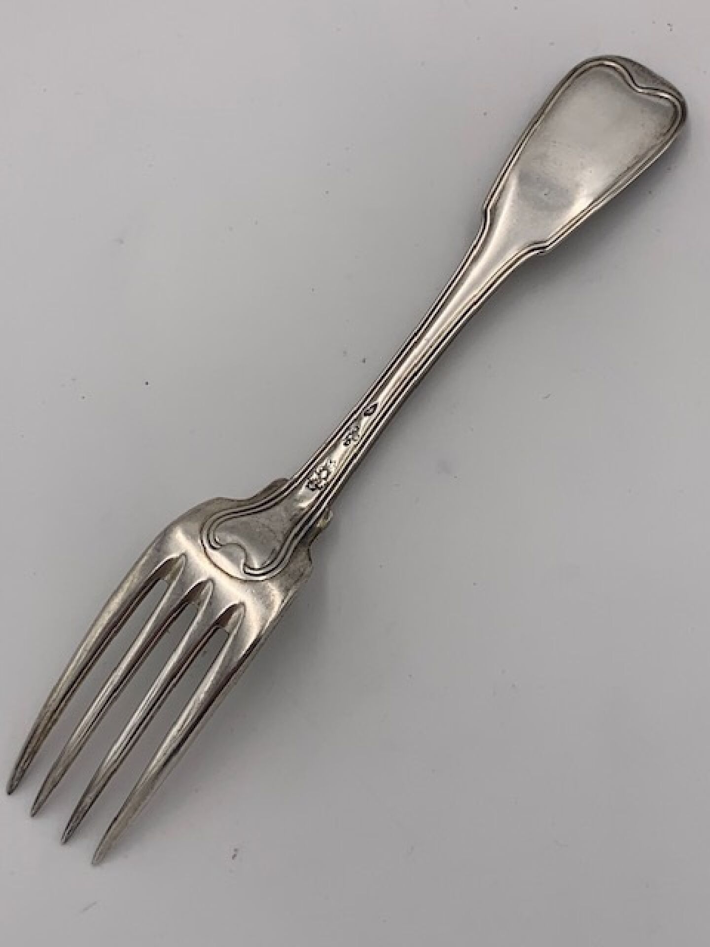 Fourchette de table en argent, modèle à filets. Poinçons Fermiers Généraux POITOU XVIIIème. Juridiction de POITIERS. NIORT vers 1770. Maître-orfèvre : Jean-François FEBVRE reçu en 1769. Poids : 82g
