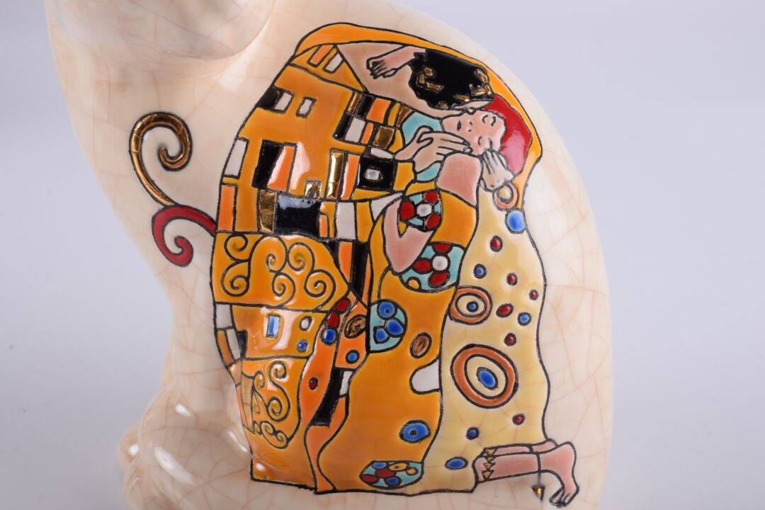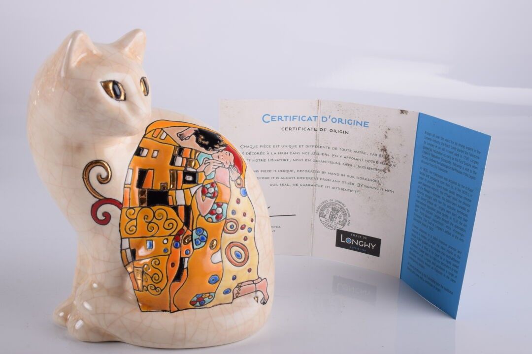 Emaux de LONGWY. Chat assis "Hommage à Klimt" à tirage limité numéroté 40/250