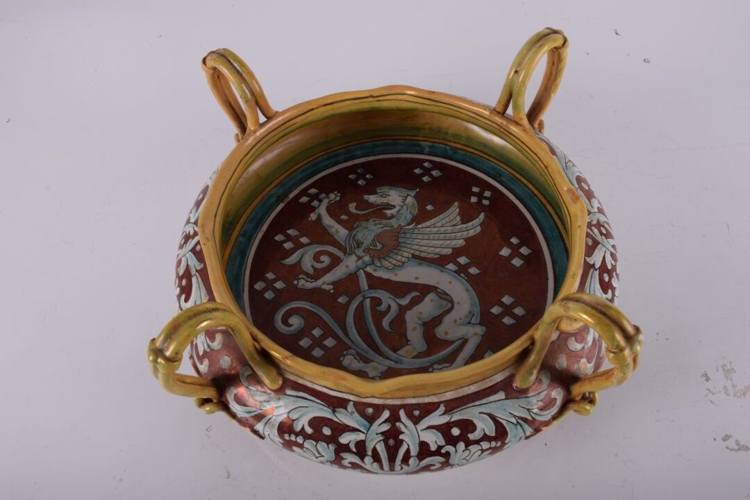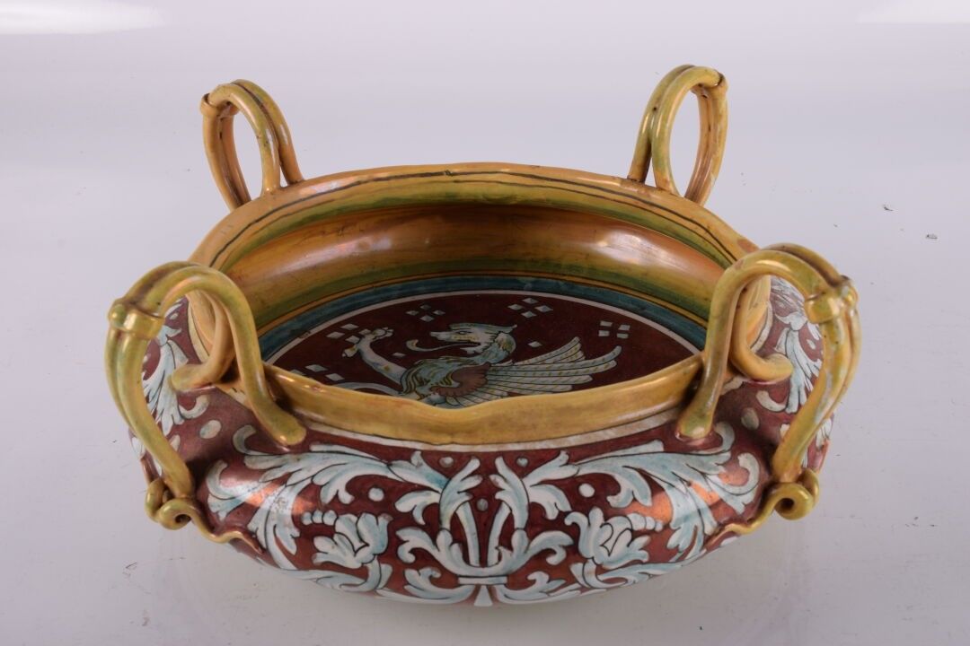 Dans le goût de GIEN Grande coupe en faïence à 4 anses