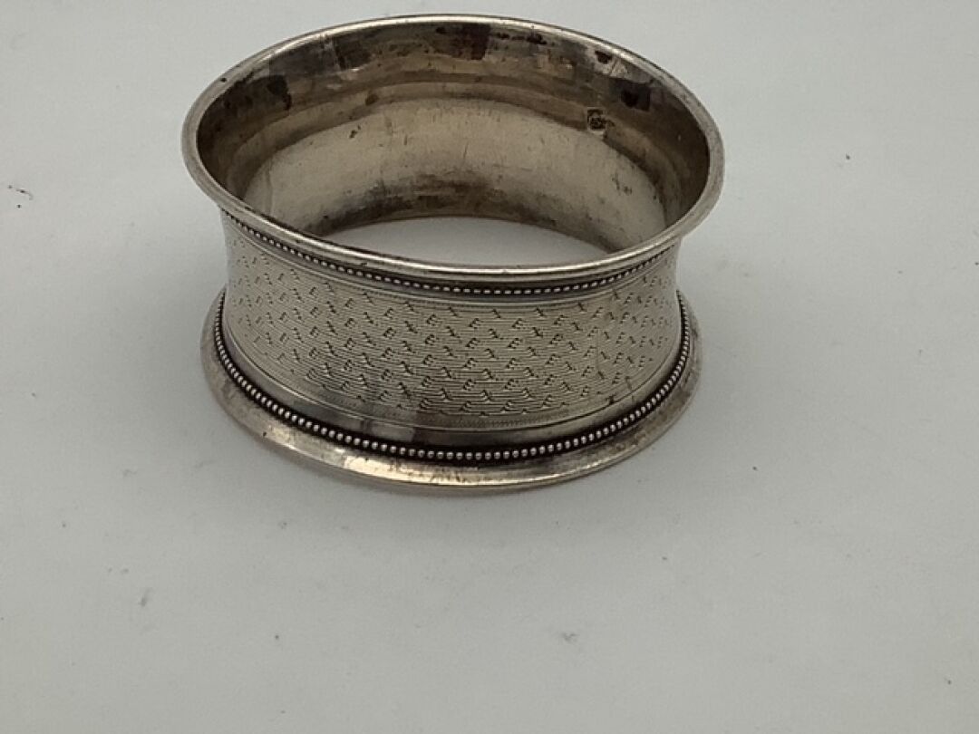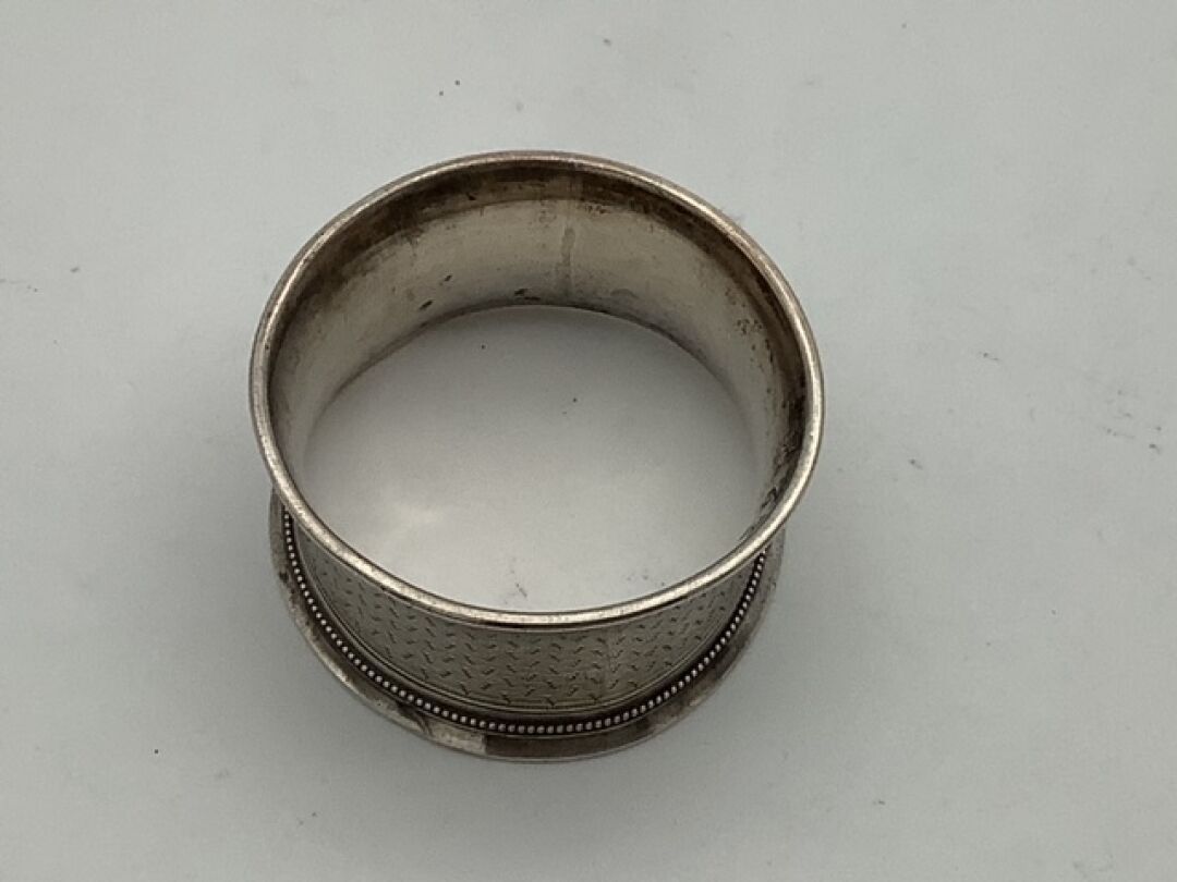 Anneau de serviette en argent, à décor de guillochés et de rangs de perles. Poinçon MINERVE. Poids : 24g