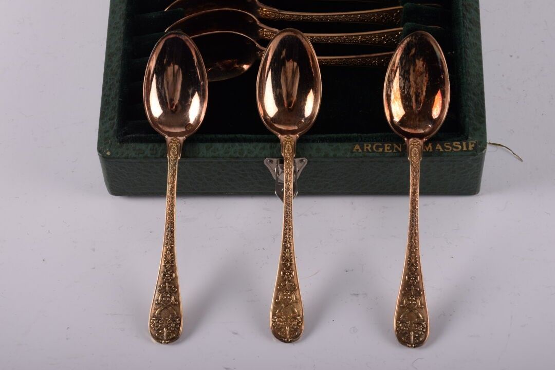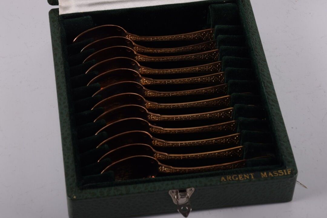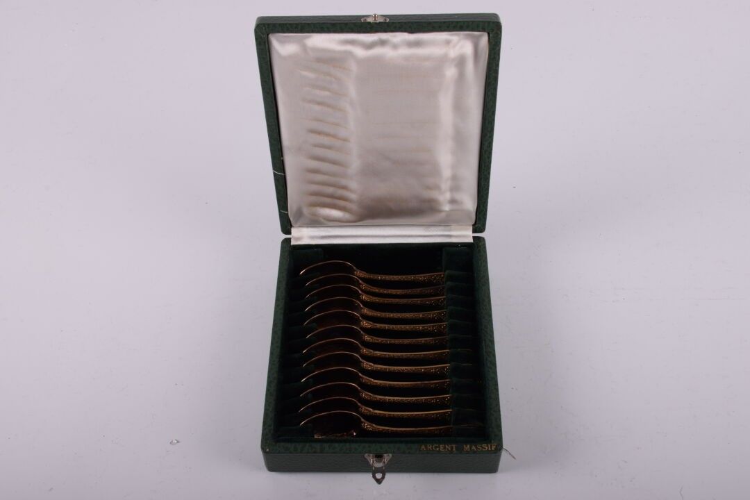 CHRISTOFLE. 12 cuillères en vermeil en coffret Poids : 12 gr…