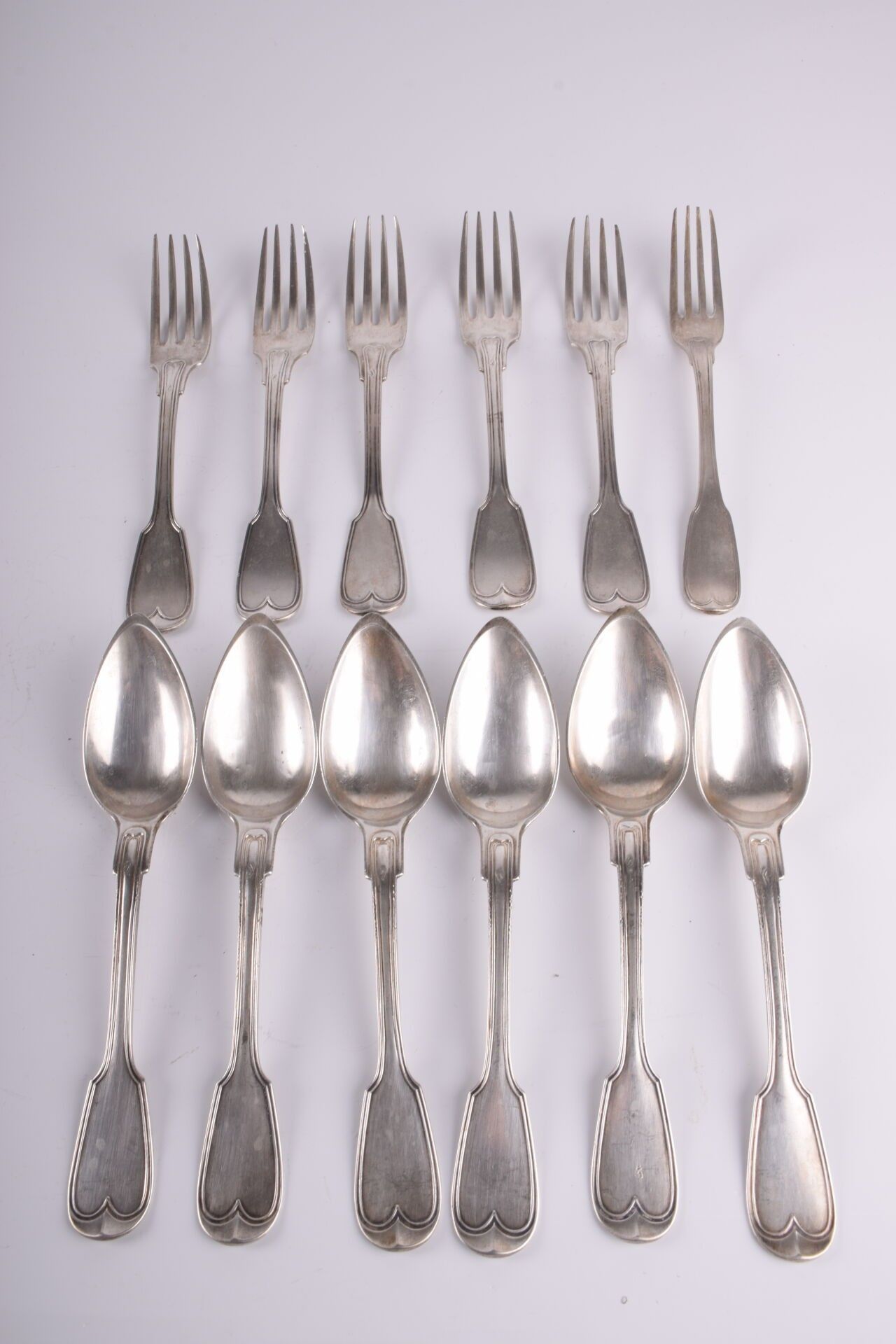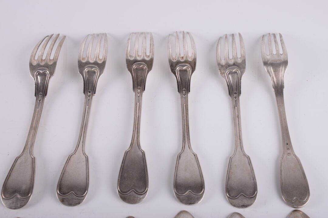T.RAEUBER. 6 couverts de table en argent modèle filet
