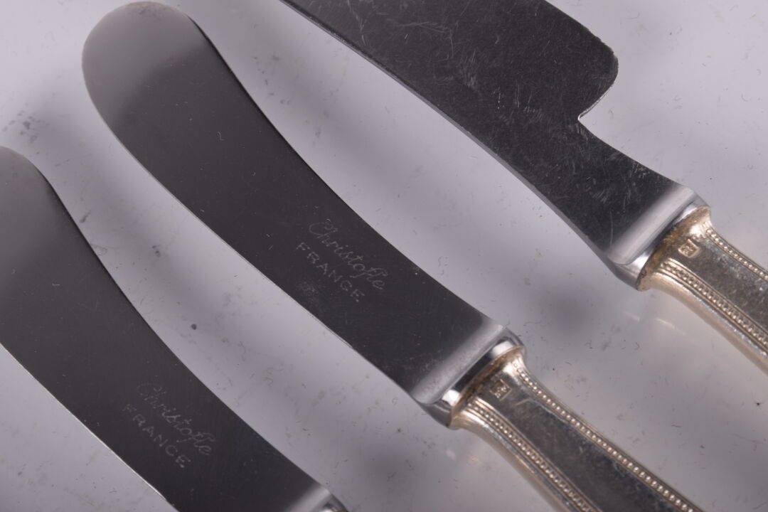 CHRISTOFLE. 5 couteaux dont 1 à fromage et 4 à beurre en mét…