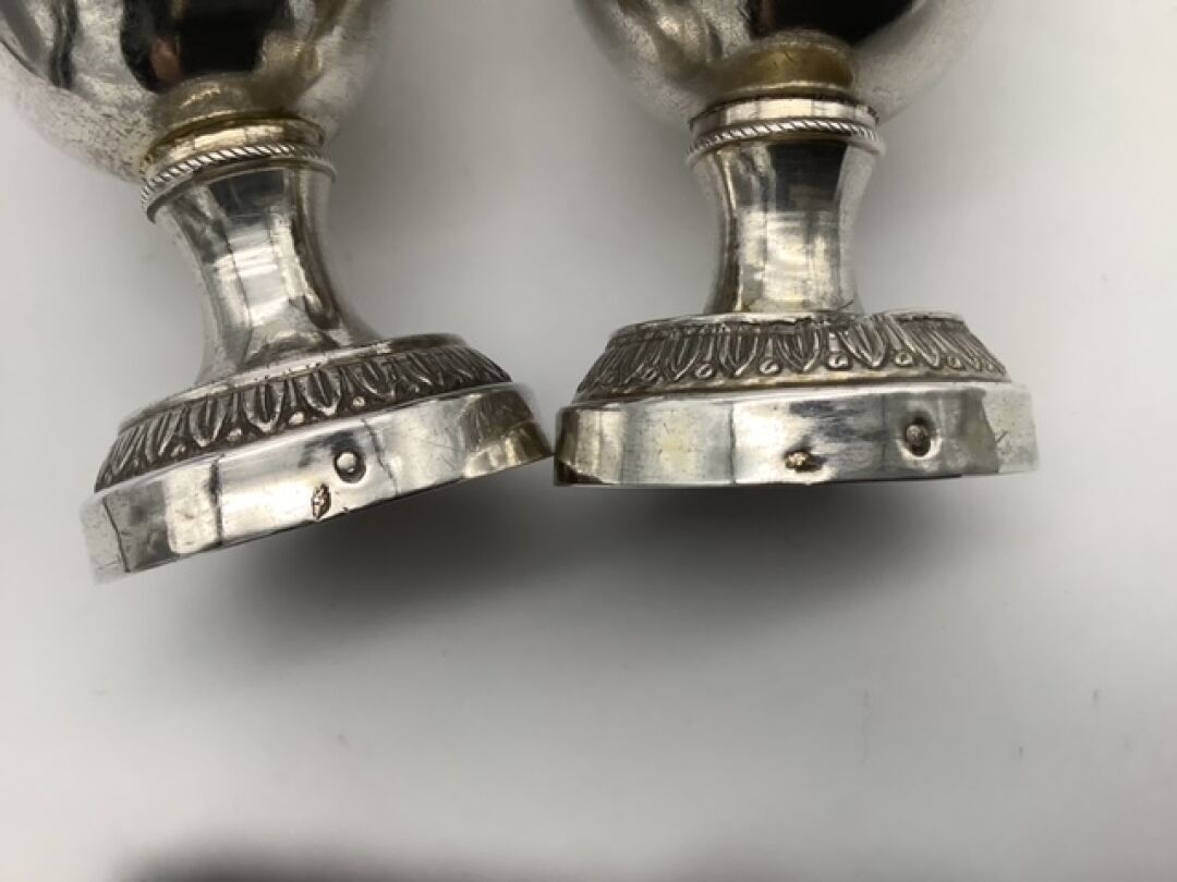 Paire de coquetiers en argent en forme de vase Médicis posan…