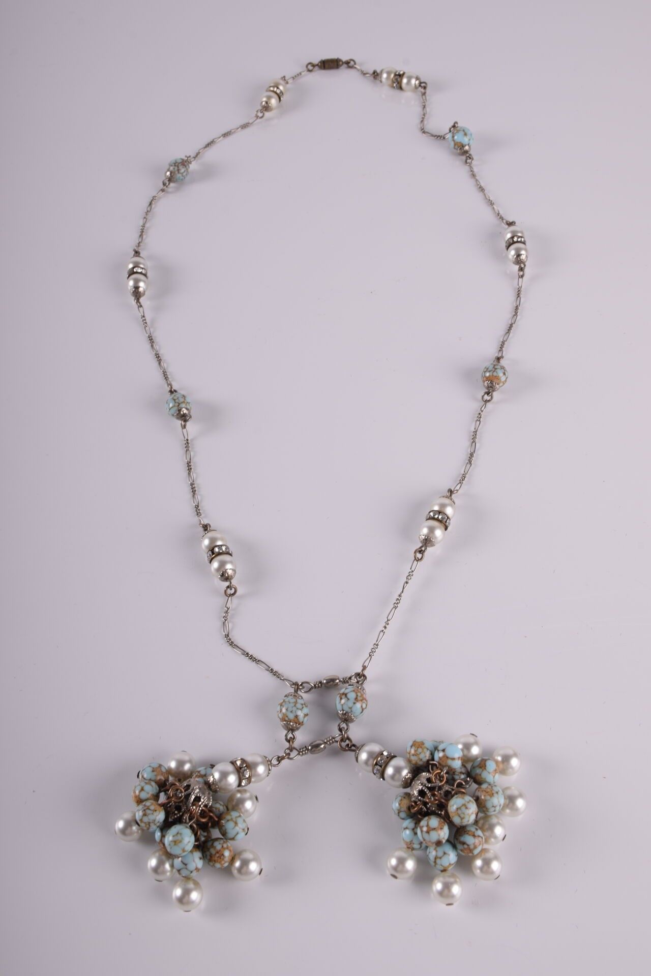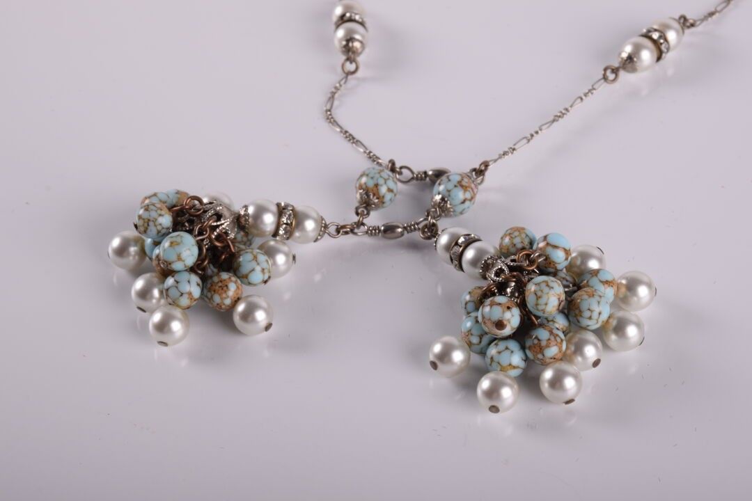 Collier de perles fantaisie et de couleurs avec deux pompons