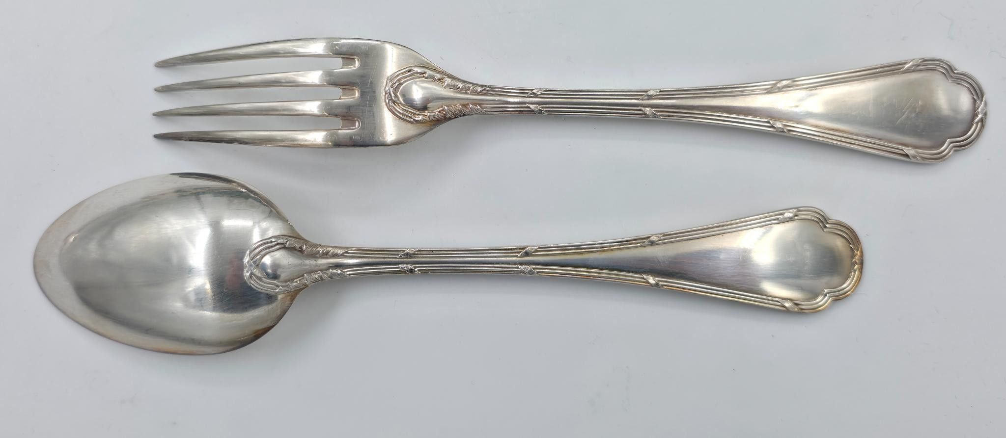 ERCUIS. Partie de ménagère en métal argenté modèle jonc de f…
