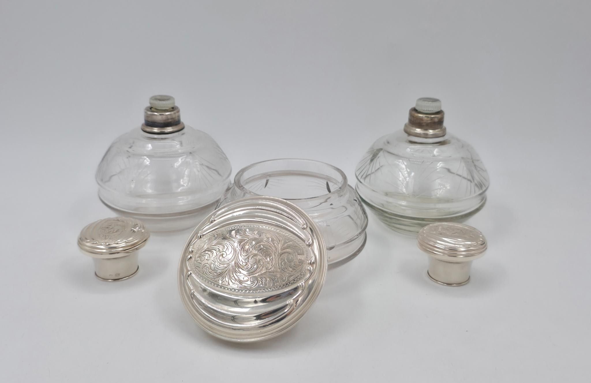 Garniture de toilette en argent comprenant : deux flacons, u…