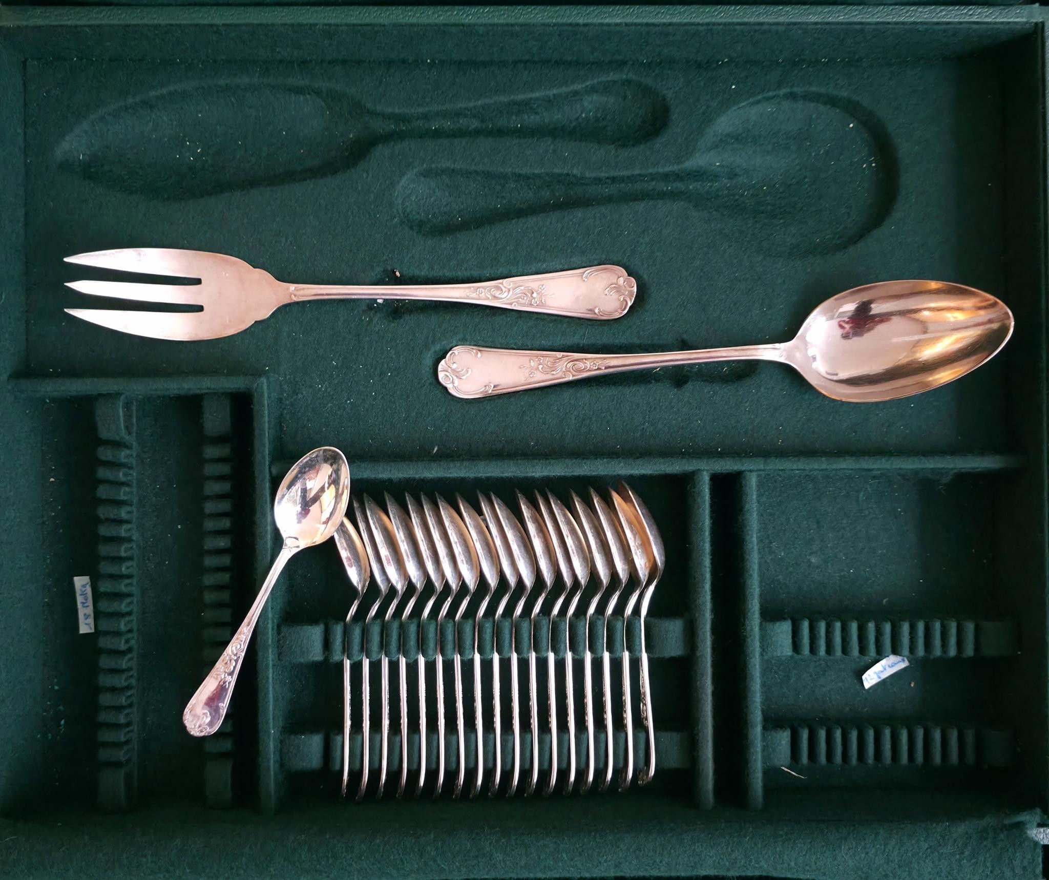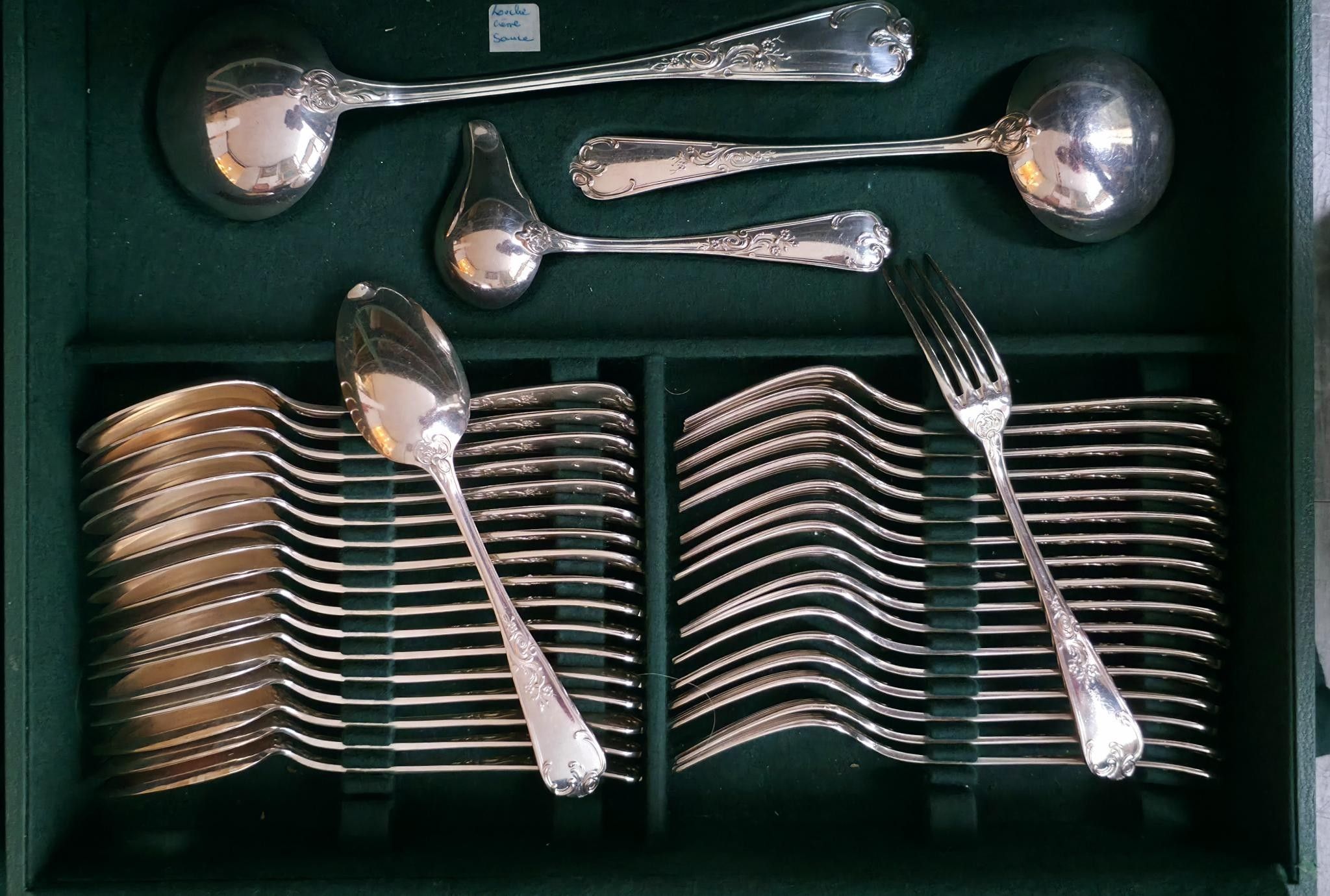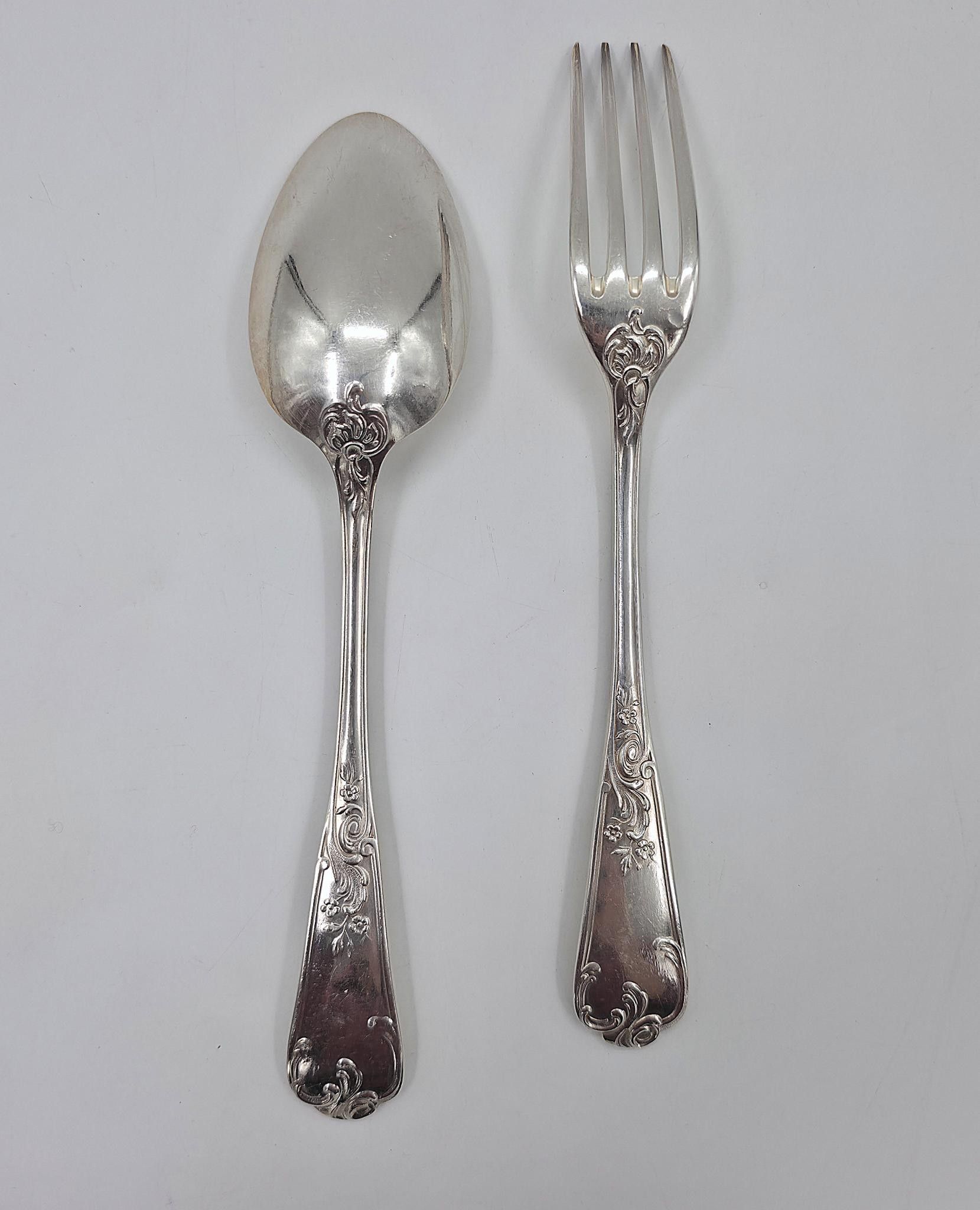 Partie de ménagère en métal argenté de style Louis XV feuill…