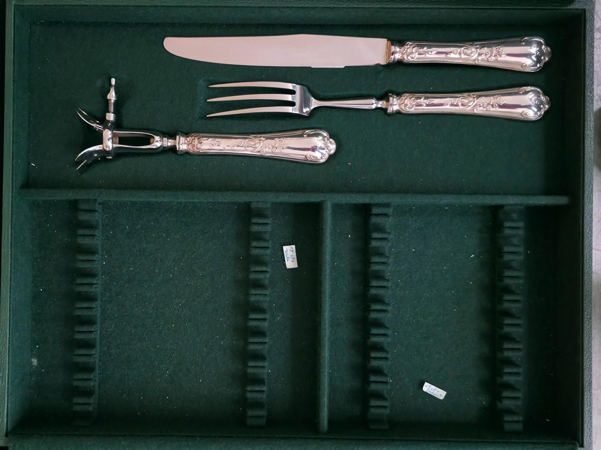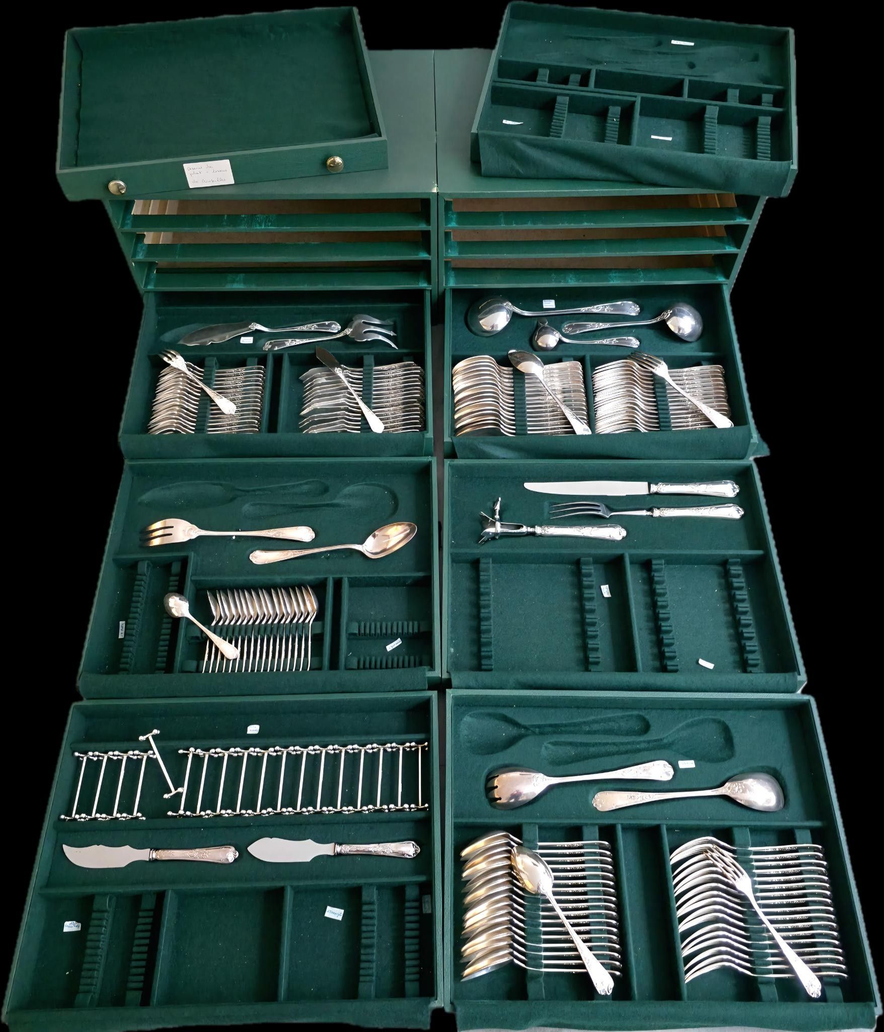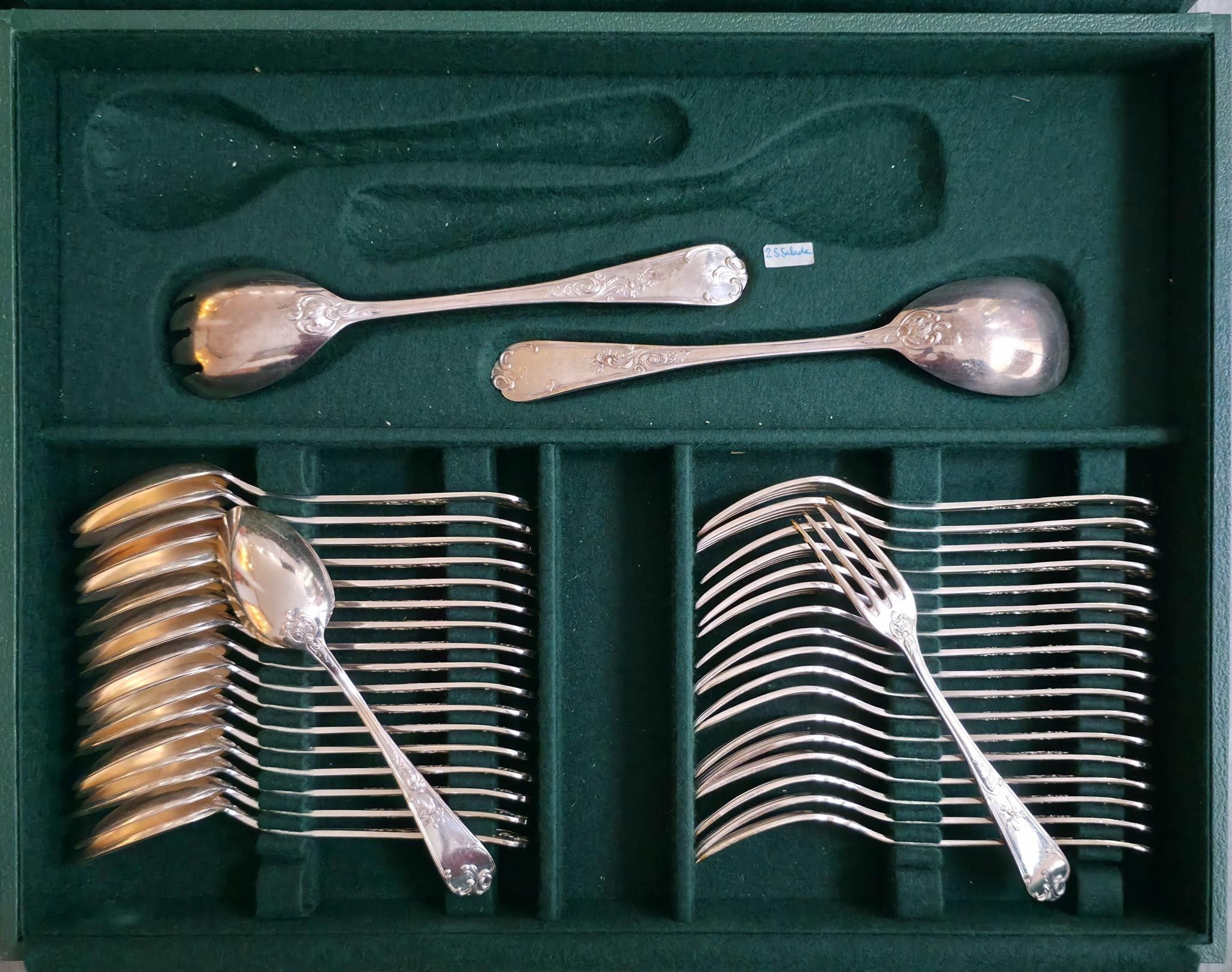 Partie de ménagère en métal argenté de style Louis XV feuill…