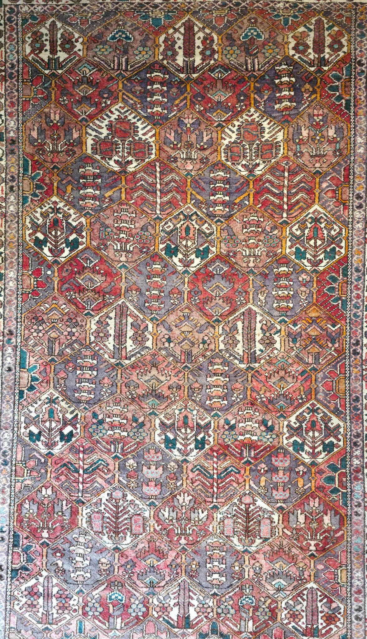 Tapis en laine à points noués à décor de caissons, bordure p…