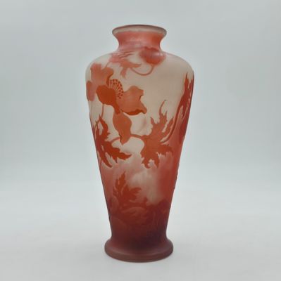 DAUM NANCY. Vase cornet en verre multi-couches à décor dégag…
