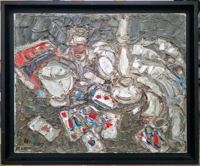 André COTTAVOZ (1922-2012). Les cartes à jouer, 1965 Huile s…