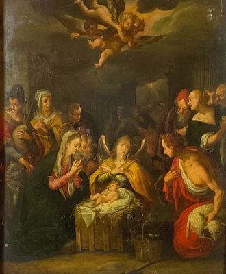 Ecole Italienne, XVIIe siècle « La Nativité » Huile sur cuiv…