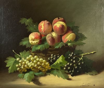 SINVILLE ?, XIXe/XXe siècle « Nature morte aux pêches et rai…