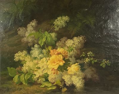 G. PERRIN (XIXe/XXe siècle), « Roses et Lilas » Huile sur to…