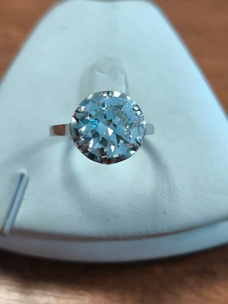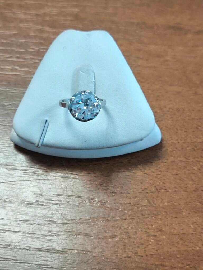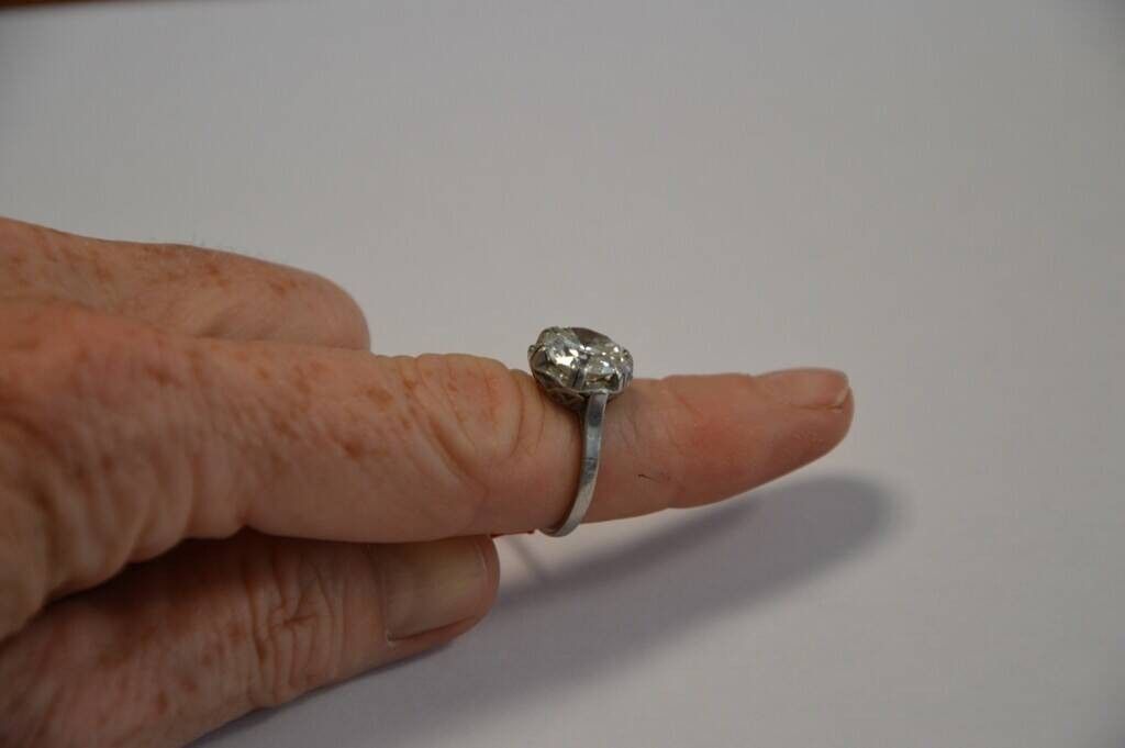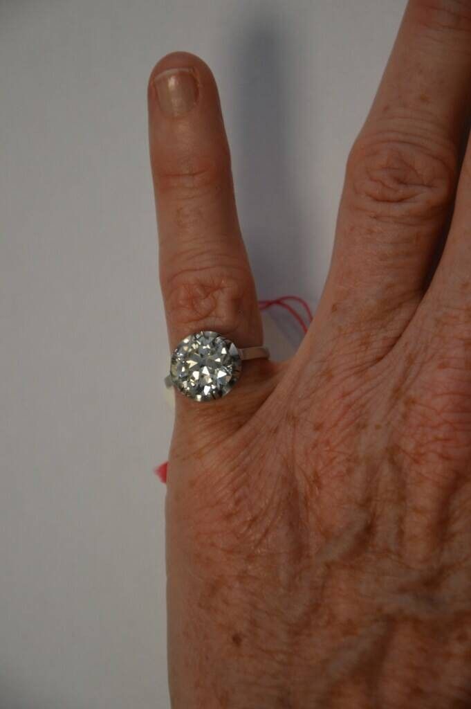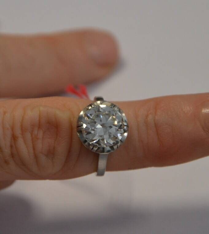 Bague solitaire en or blanc (18kt 750°) sertie d'un diamant de taille ancienne de 3ct environ. T. 51. 4,7 gr brut environ.
