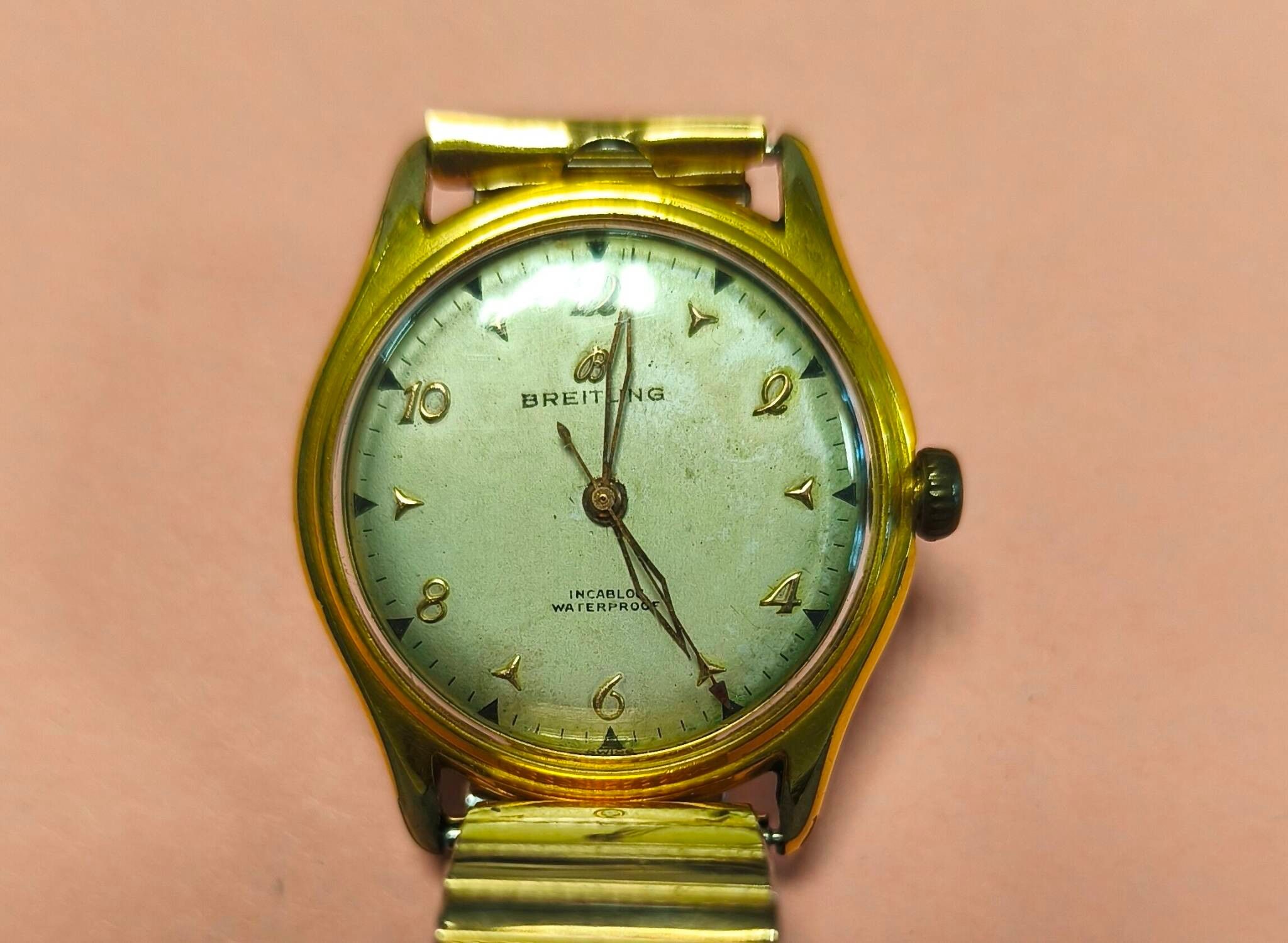 Montre bracelet d'homme en acier plaqué or datant des année 40/50