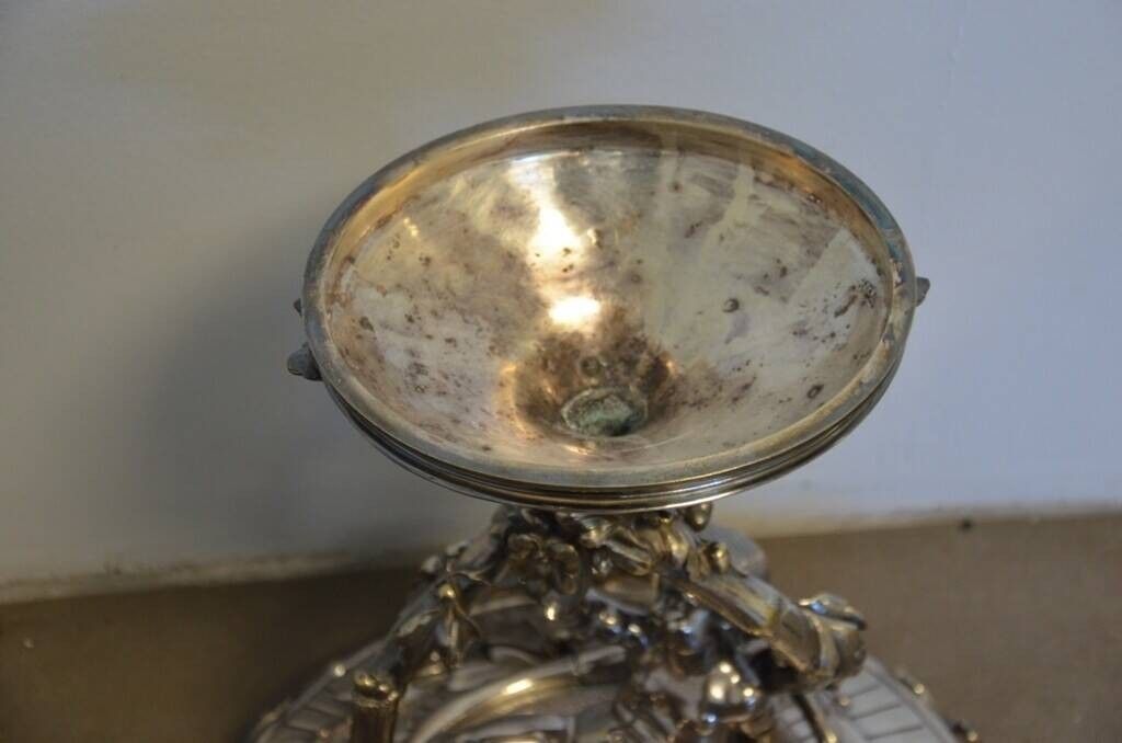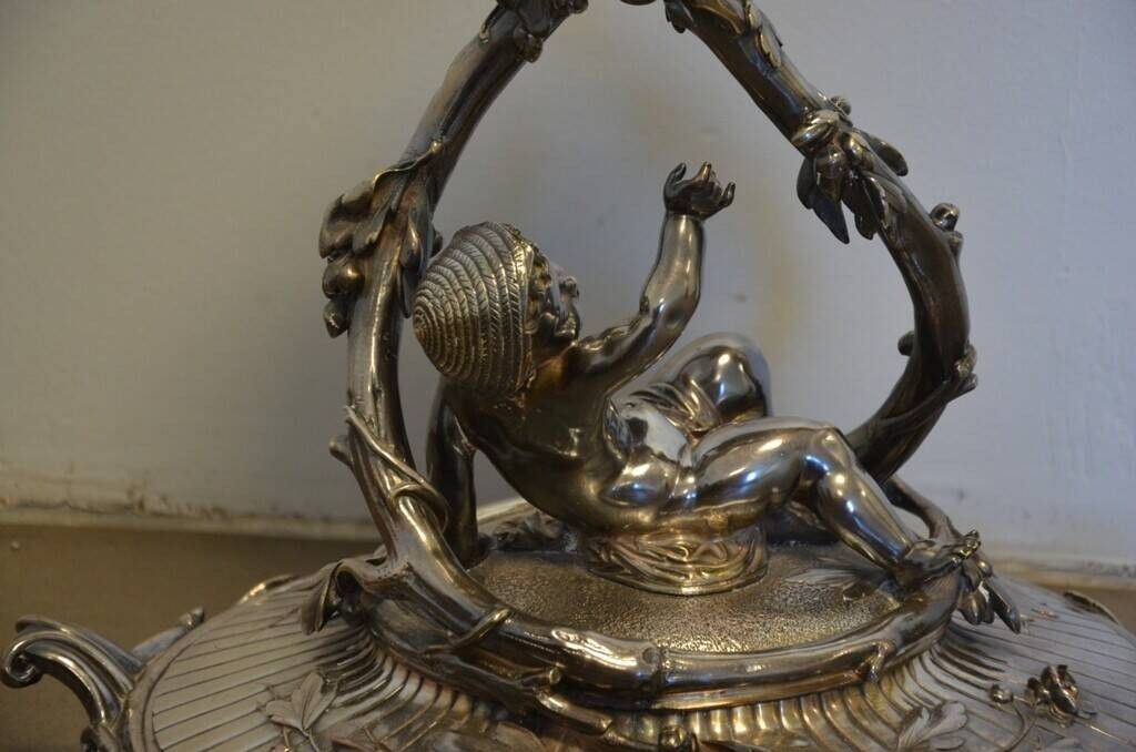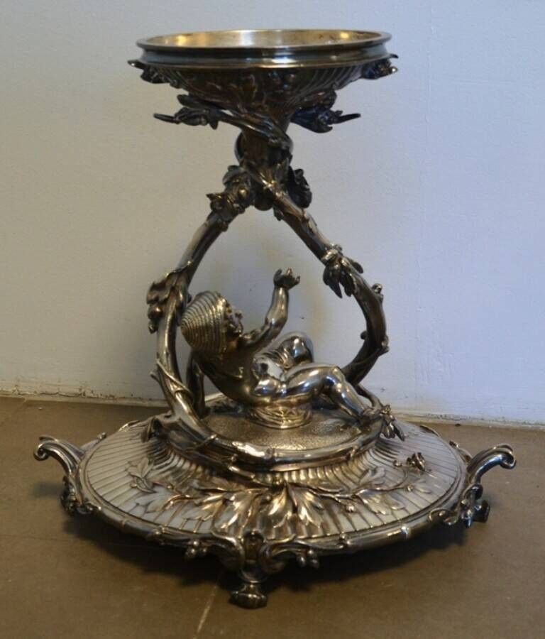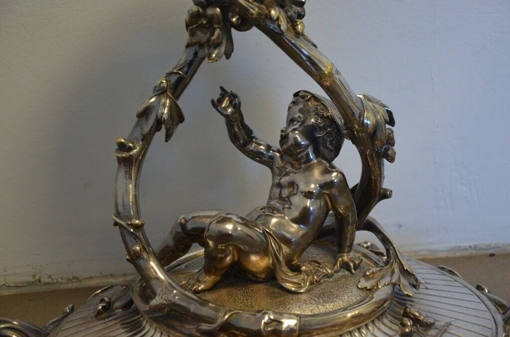 Premium CHRISTOFLE Important centre de table en bronze argenté repré…