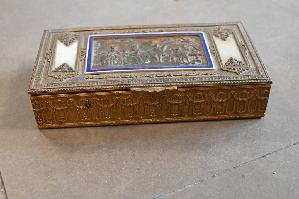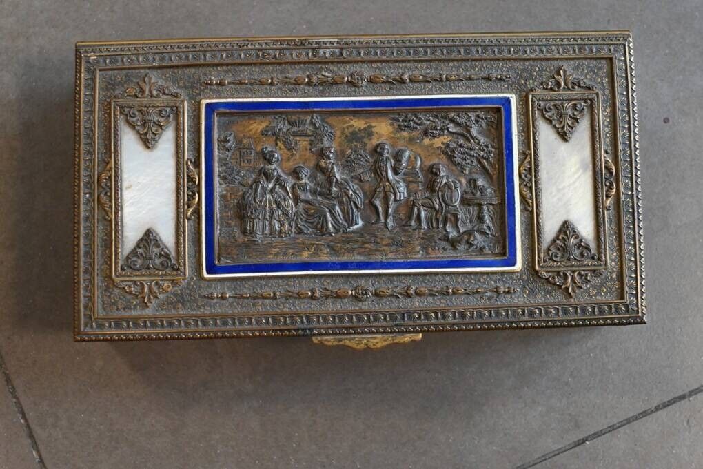 Boite à jeu en bronze ciselé à décor de scène galante