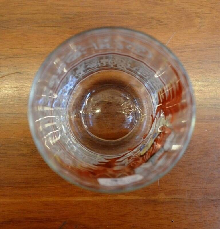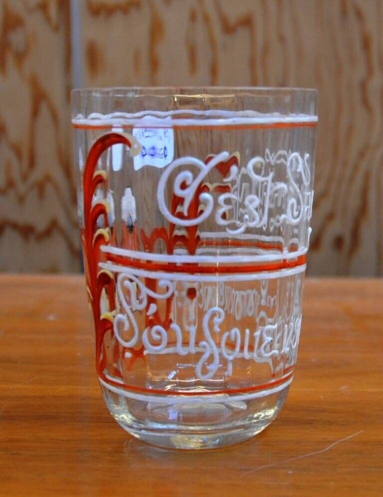 Gobelet en verre à décor émaillé d'une alsacienne dansant, signé sous la base "Cristallerie E. Gallé Nancy déposé".