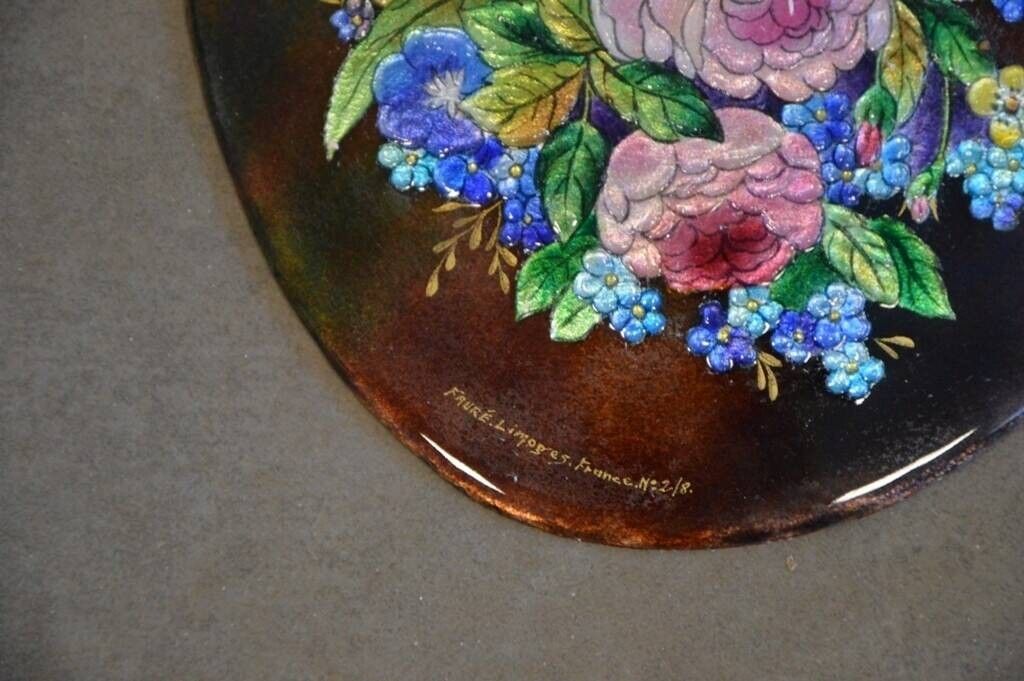 "Bouquet de fleurs" émaillé sur cuivre de forme ovale, signé en bas et n°2/8.