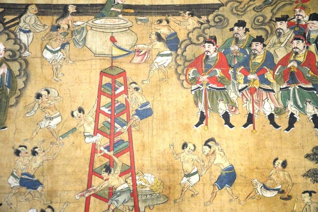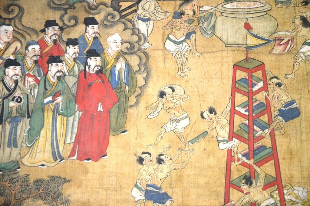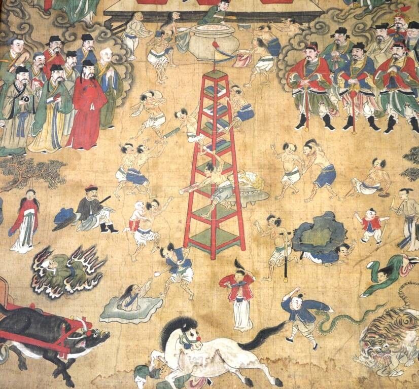 A décor de personnages autour d'une tour