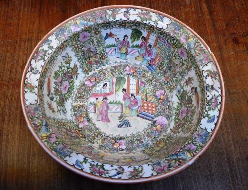 à décor polychrome de scènes de Palais animées et d'oiseaux.