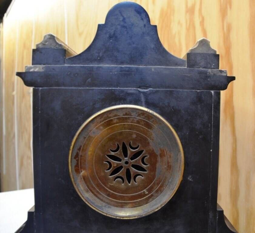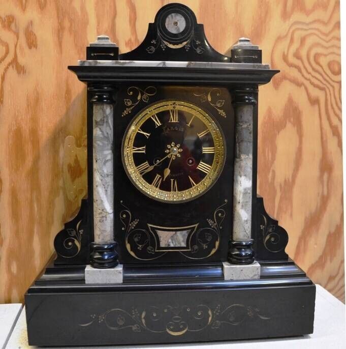 Pendule borne en mabre noir et gris,