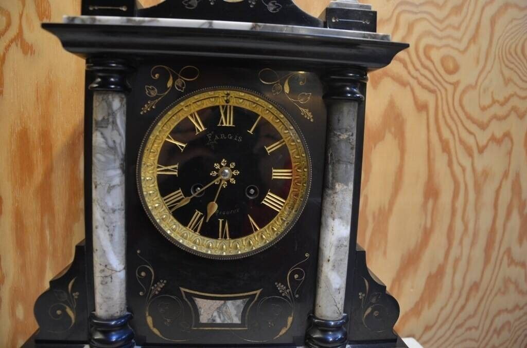 le cadran signé Fargis à Périgueux, indiquant les heures en chiffres arabes dorés, remontage à clefs.