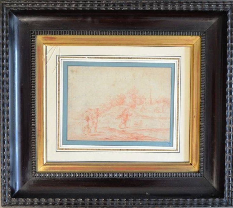 Sanguine sur papier. Etiquette de provenance au dos.