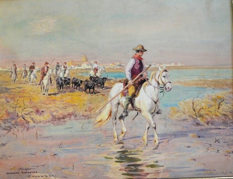 Édouard DOIGNEAU (1865-1954) "Gardians aux Saintes Marie de …