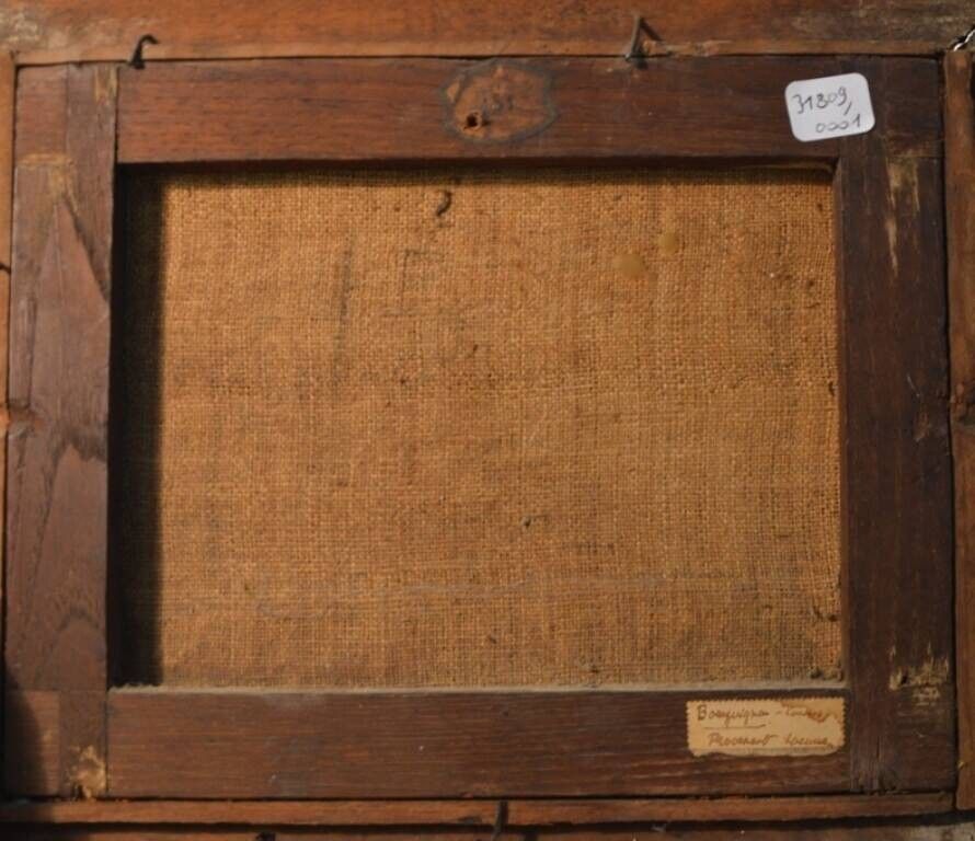 Au revers du châssis une ancienne étiquette manuscrite à la plume Courtois Bourguignon / Provenant (illisible).