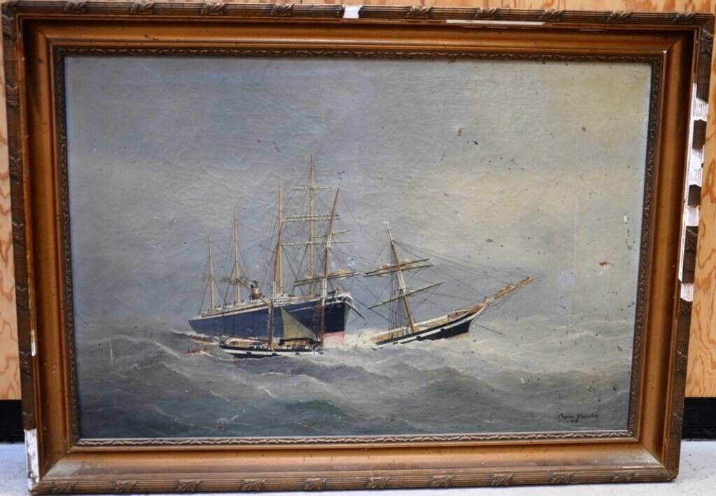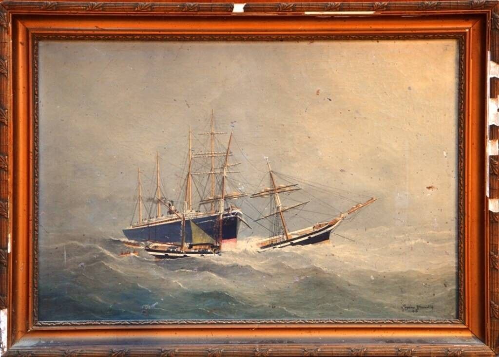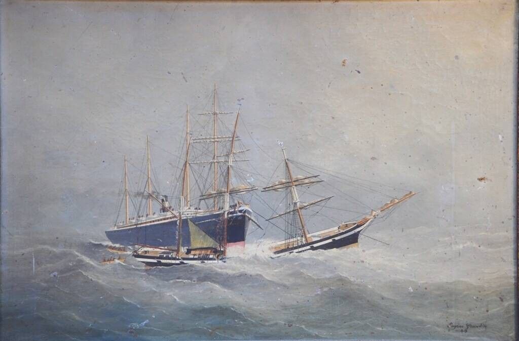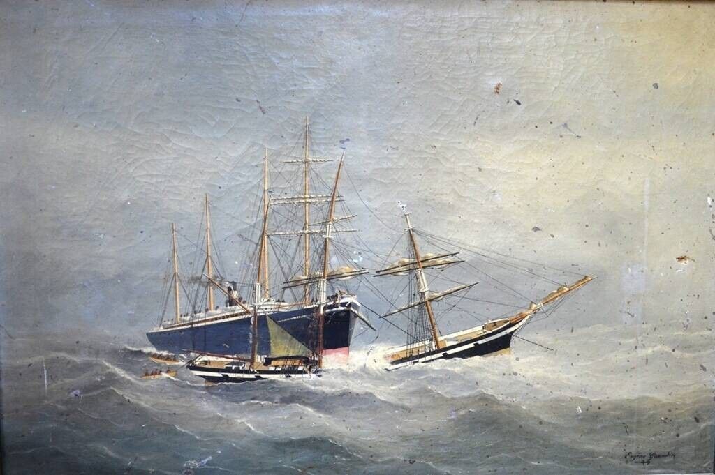 Eugène GRANDIN (1833-1919) "Paquebots sous la tempête".