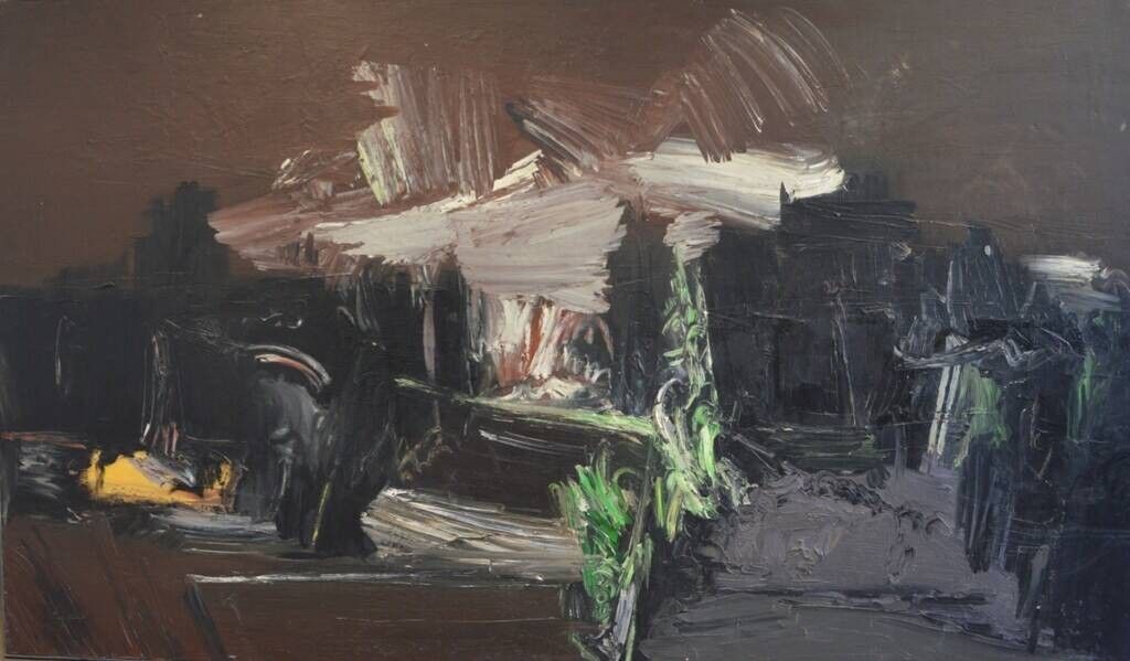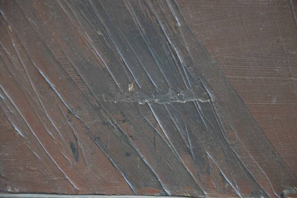 (Sauts de peinture et restaurations en bas à gauche dans le noir.