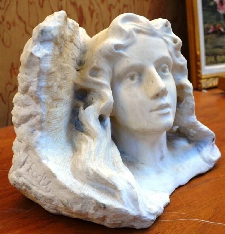Sculpture en marbre de Carrare signé sur la base sur le côté.